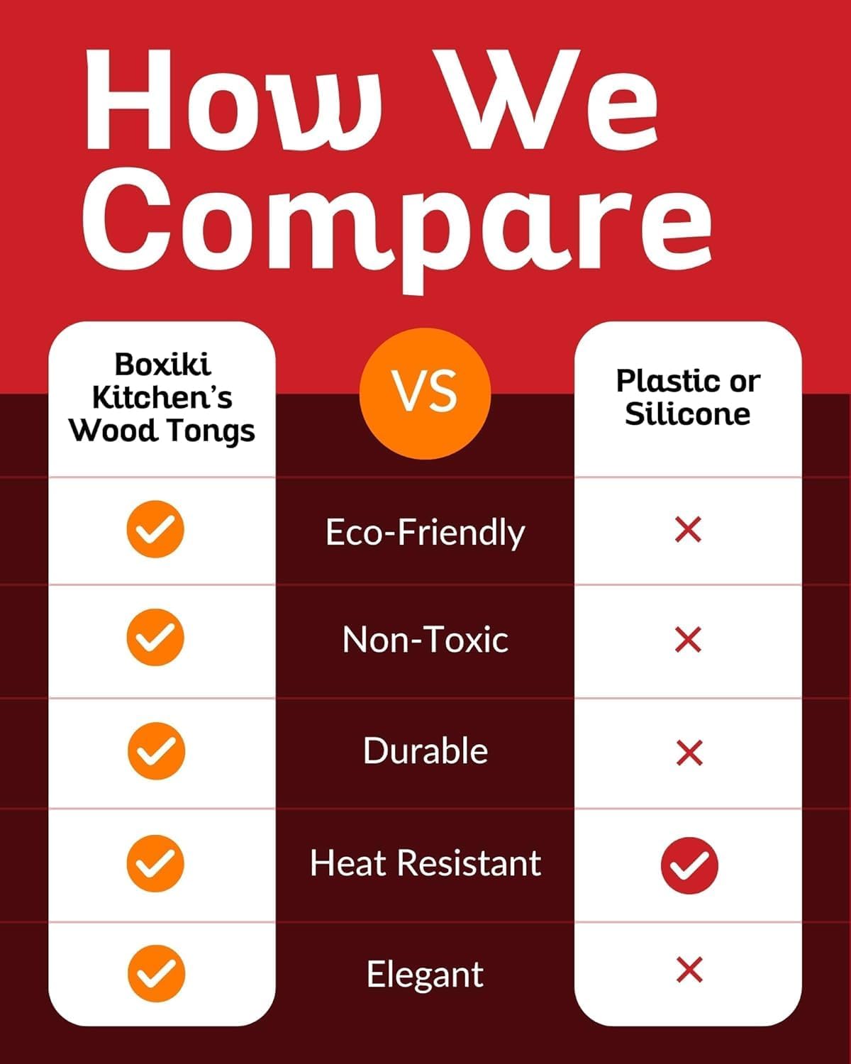 - SCRATCH-RESISTANT: Our tongs for serving food come with wooden tips, ensuring they are gentle on all types of cookware. Wood Tongs, ideal for cooking, grilling, BBQ, and tossing salad, they prevent scratches on non-stick surfaces, making them a safe choice for your favorite pots and pans.