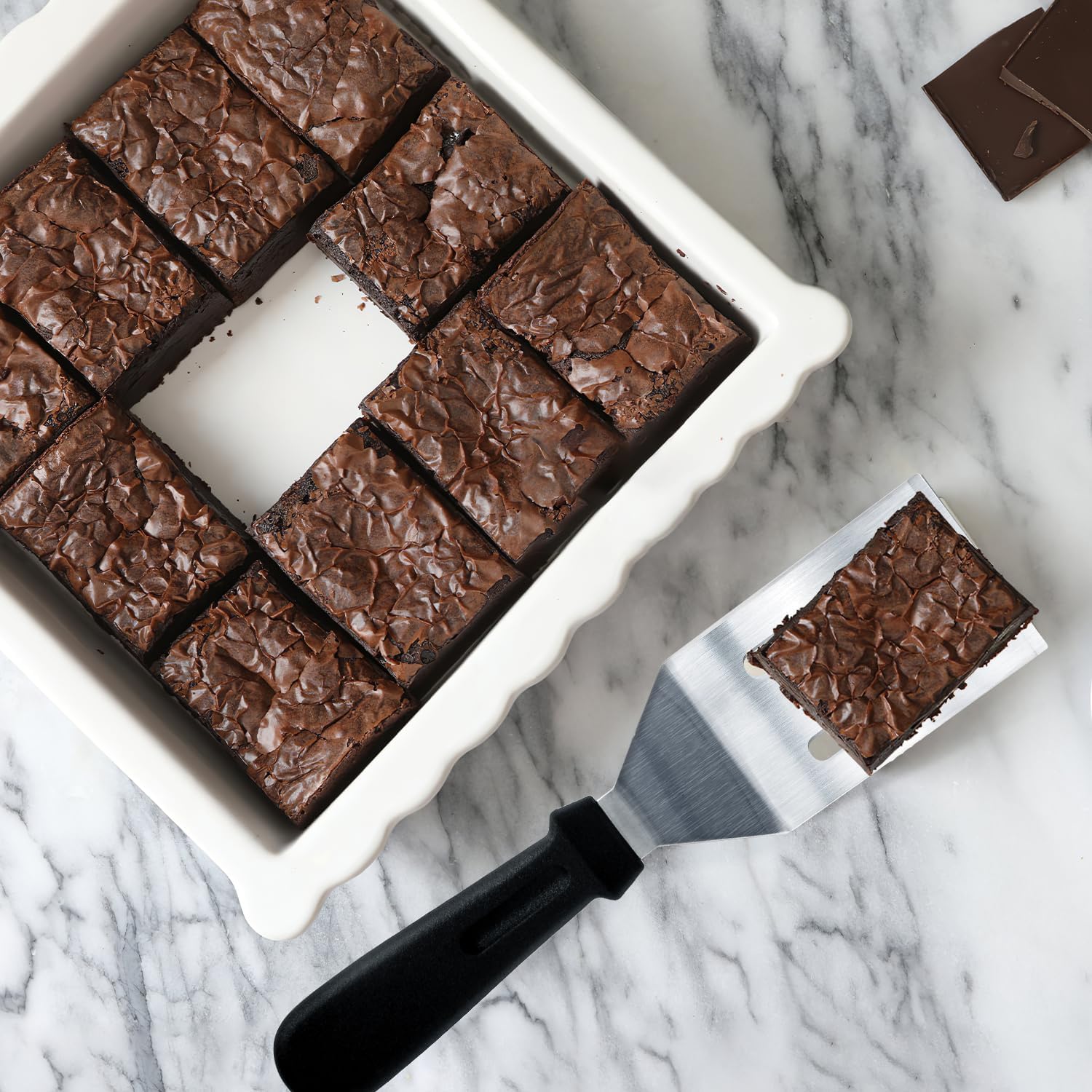 - Professional Metal Spatula: This package includes 1 slotted spatula 9.8 x 2.35 inches. This spatula is such a handy size. It’s perfect for cutting and serving brownies, quiche, cornbread, etc. Also it’s perfect for serving anything our of a pyrex dish.