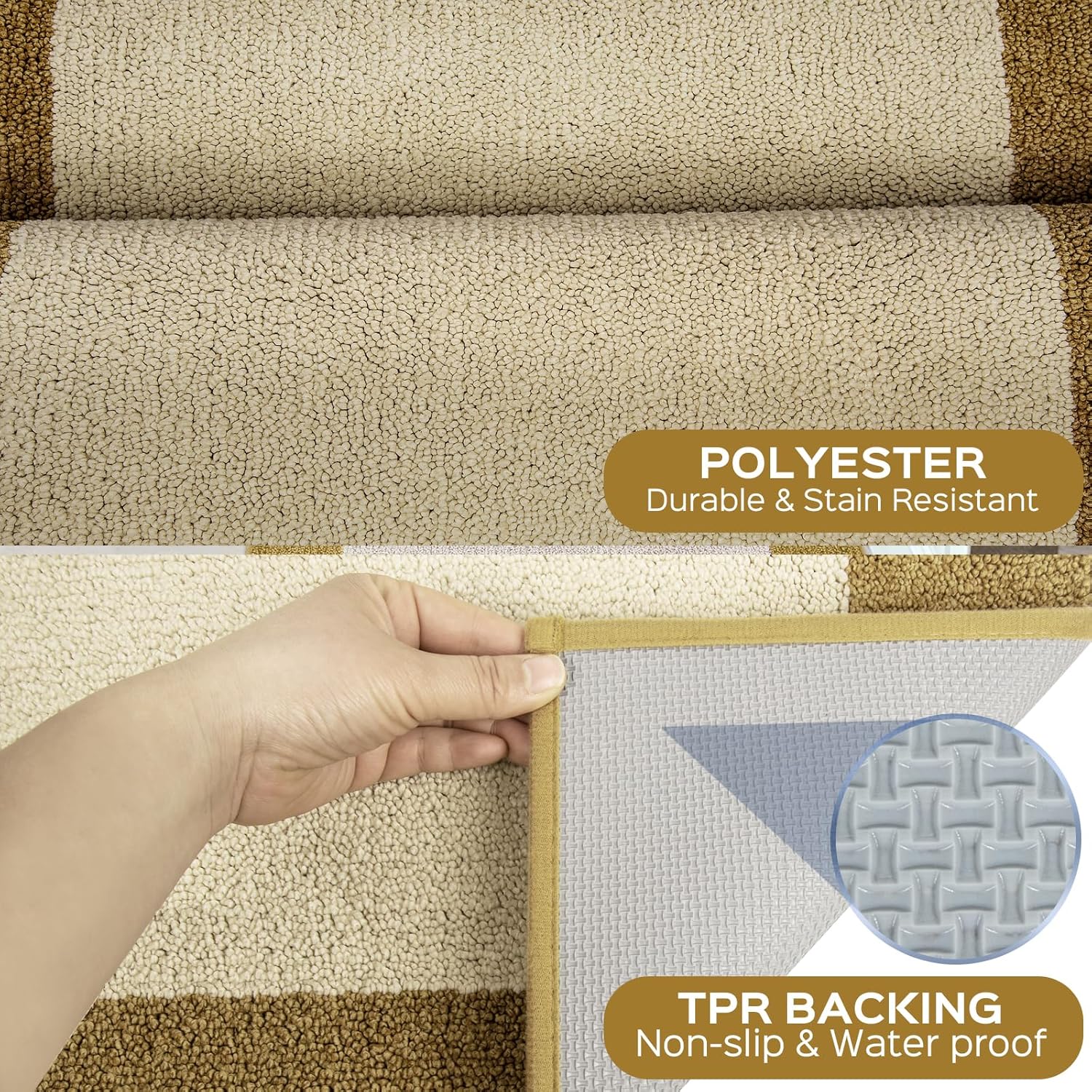 • SUPER ABSORBENT: With countless polyester microfibers, our kitchen rugs efficiently absorb spilled oil and water.This sophisticated look will elevate any space, including living room, kitchen, bedroom, bathroom, and hallways.