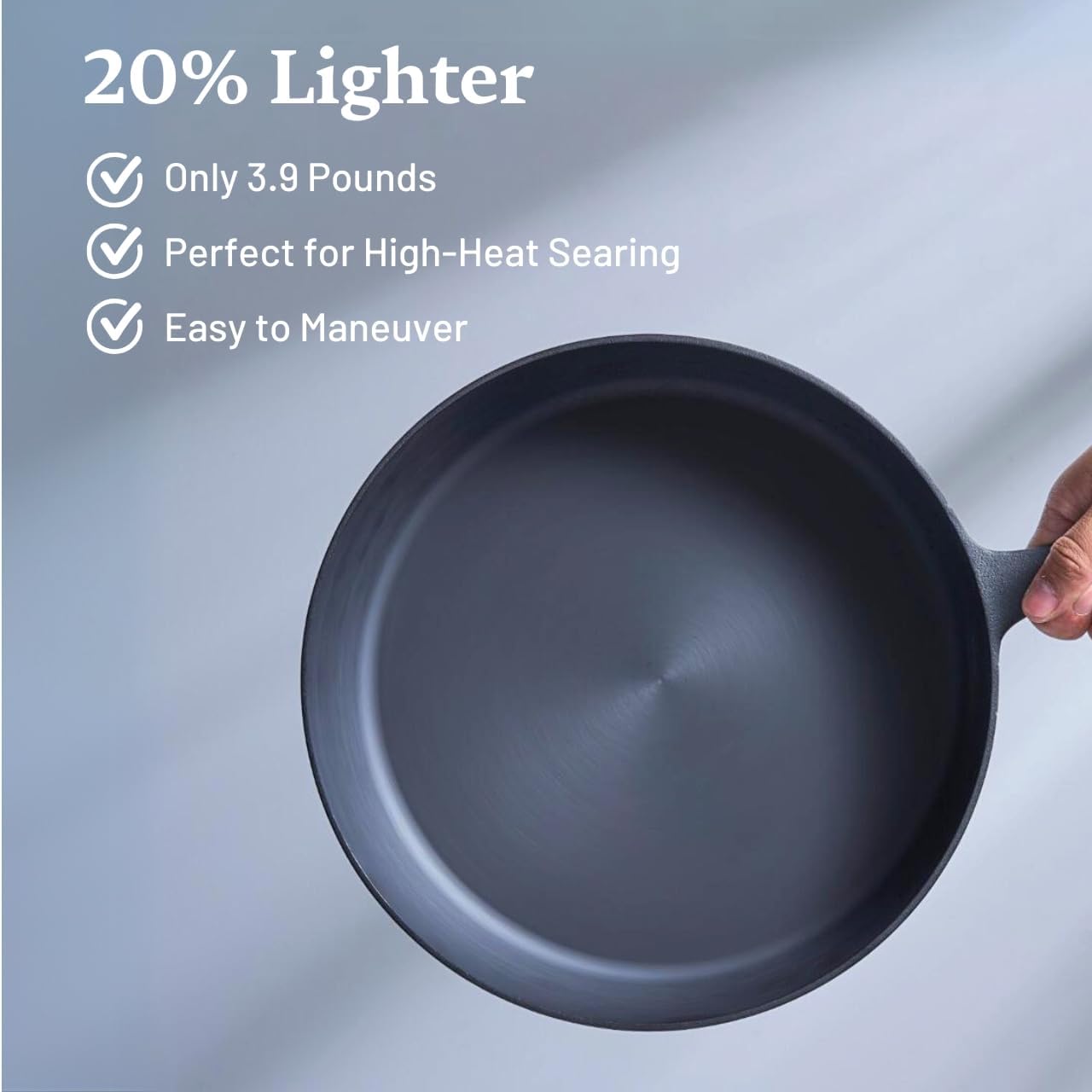 - Lightweight cast iron skillet: This 10 inch cast iron skillet is 20% lighter than traditional ones, weighing just 3.9 lbs. Perfect as a camping skillet or for everyday use, it's ideal for those who want the benefits of cast iron cookware without the heft.