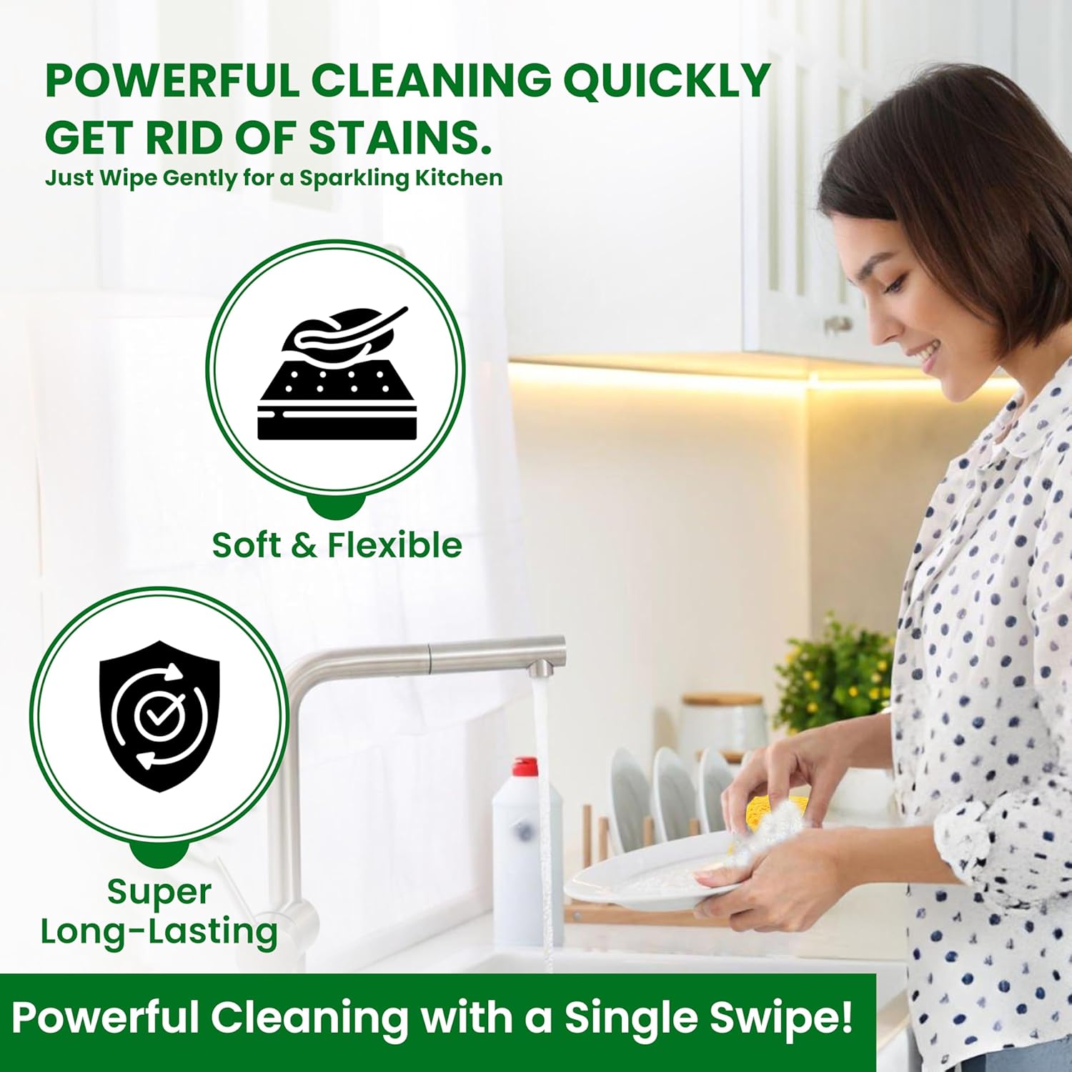 - Perfect for All Surfaces: Scratch-free and gentle with the surfaces, our cellulose sponges kitchen can remove stubborn dirt, impurities, grease, and grime from most surfaces, including ceramic, glass, metal, porcelain, stainless steel, stone, or wood.