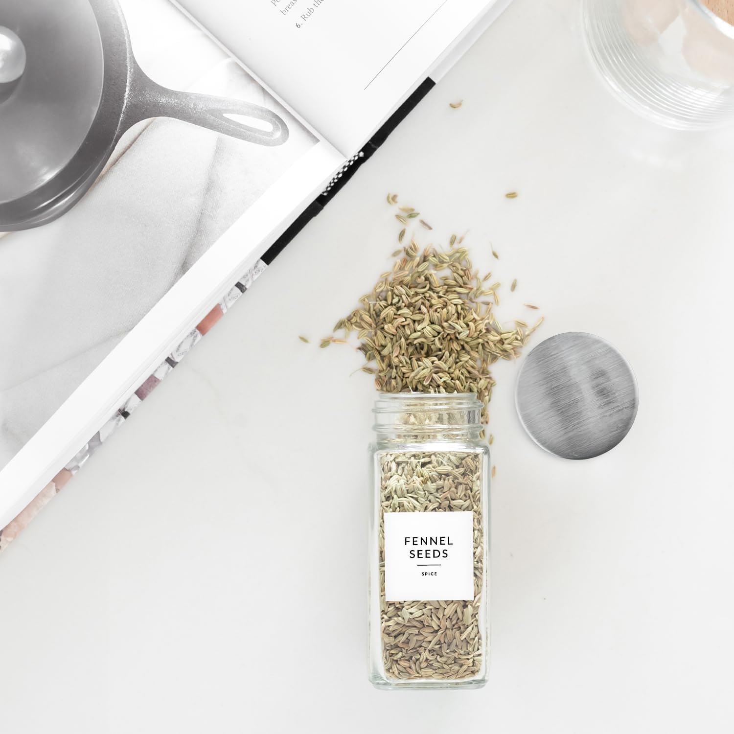 - 374 SPICE LABELS STICKERS - Complete Square Spice Jars Stickers Sets in Minimalist Labels design including a White Spice Labels, Black Labels, and 88 Food Date Expiration Labels to keep your Kitchen Organized and your Spices Fresh.