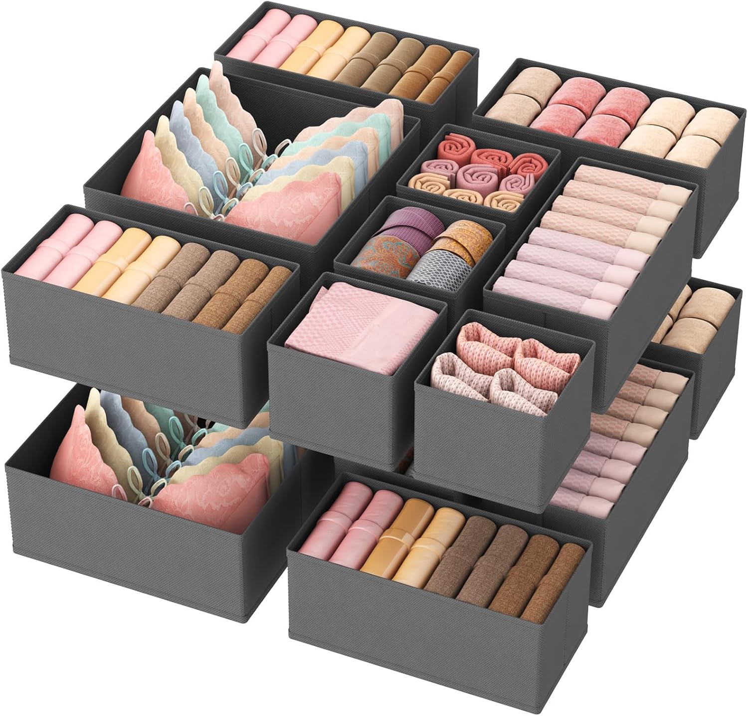 - Versatile Storage: The different-sized boxes cater to various clothing items; the 11" x 11" x 4.7" box is suitable for bras and underwear, the 11"x 5.5"x 4.7" box is suitable for thin T-shirts, and the 5.5"x 5.5" x 4.7" box is suitable for socks and ties