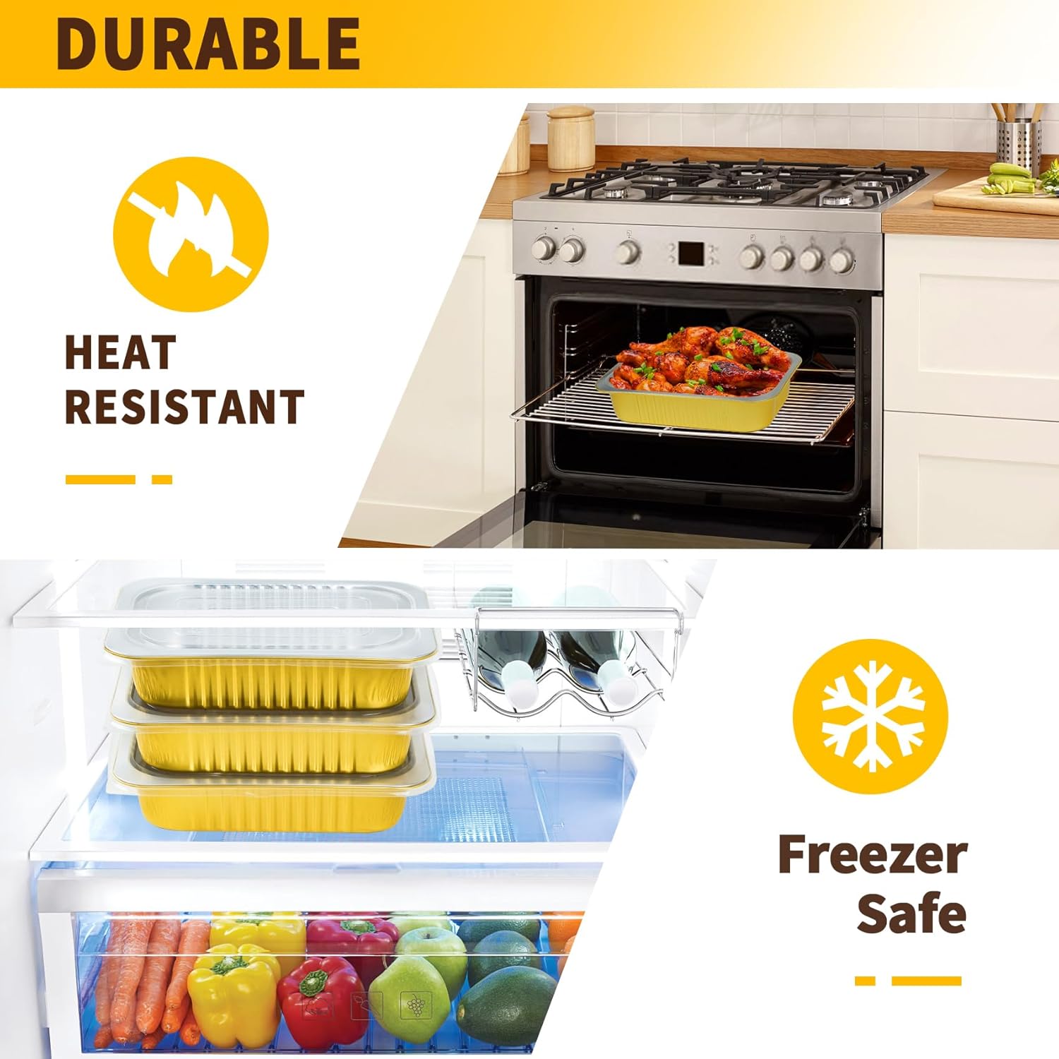 - 【Heavy Duty Aluminum Pans with Lids】Our 5 lb Aluminum Foil pans with lids are sturdy enough to hold your heaviest meals! Not all foil pans are created equal, ours are extra thick and 2 times thicker than regular silver foil pans, so they won't tip over and lose their shape! These small aluminum pans come with leak-proof PP lids, perfect for baking, cooking, roasting, freezer storage, and takeout containers.
