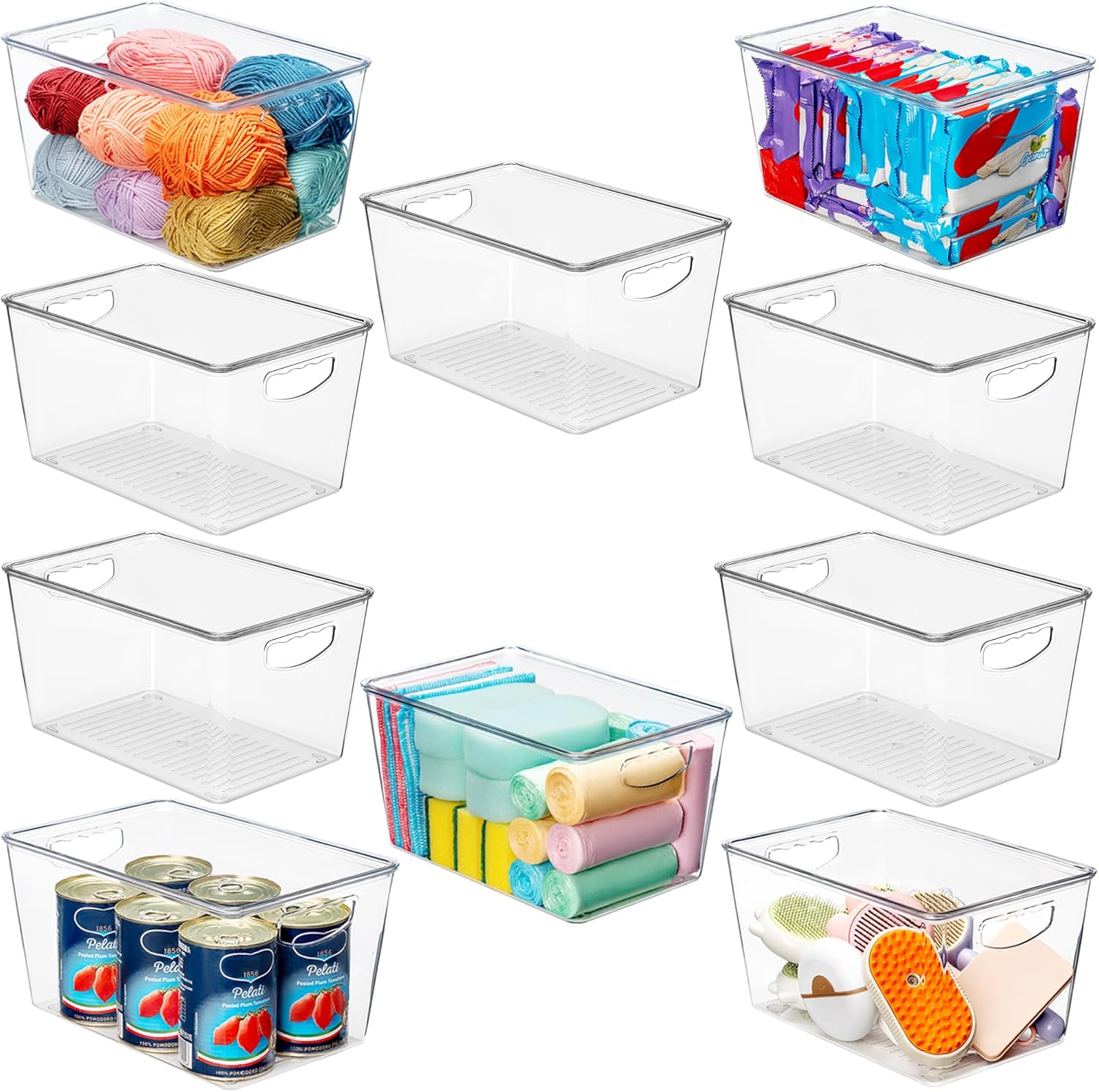 theaoo Clear Storage Bins with Lids Stackable - Large Plastic Containers for Pantry Organization and Storage - Perfect for kitchen,Fridge,Laundry Room,Bathroom,Garage,Closet,Cabinet Organizer -10 Pack
