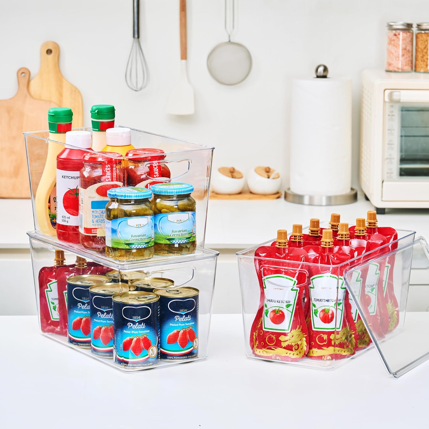 - Multi scenario and multi-purpose: This set comes with 8 pcs same size bins, freely edit your style. These are the perfect addition to your home to keep items organized and within reach, quickly being a professional Storage Master! Fit fruits/canned goods/food packet/makeup/electronic accessories/crafts/cleaning supplies. Centralized storage used in kitchen/pantry/fridge/Freezer/cabinets/shelves, choose anywhere you want to place. ORGANIZE WITH OUR VALUE SET!