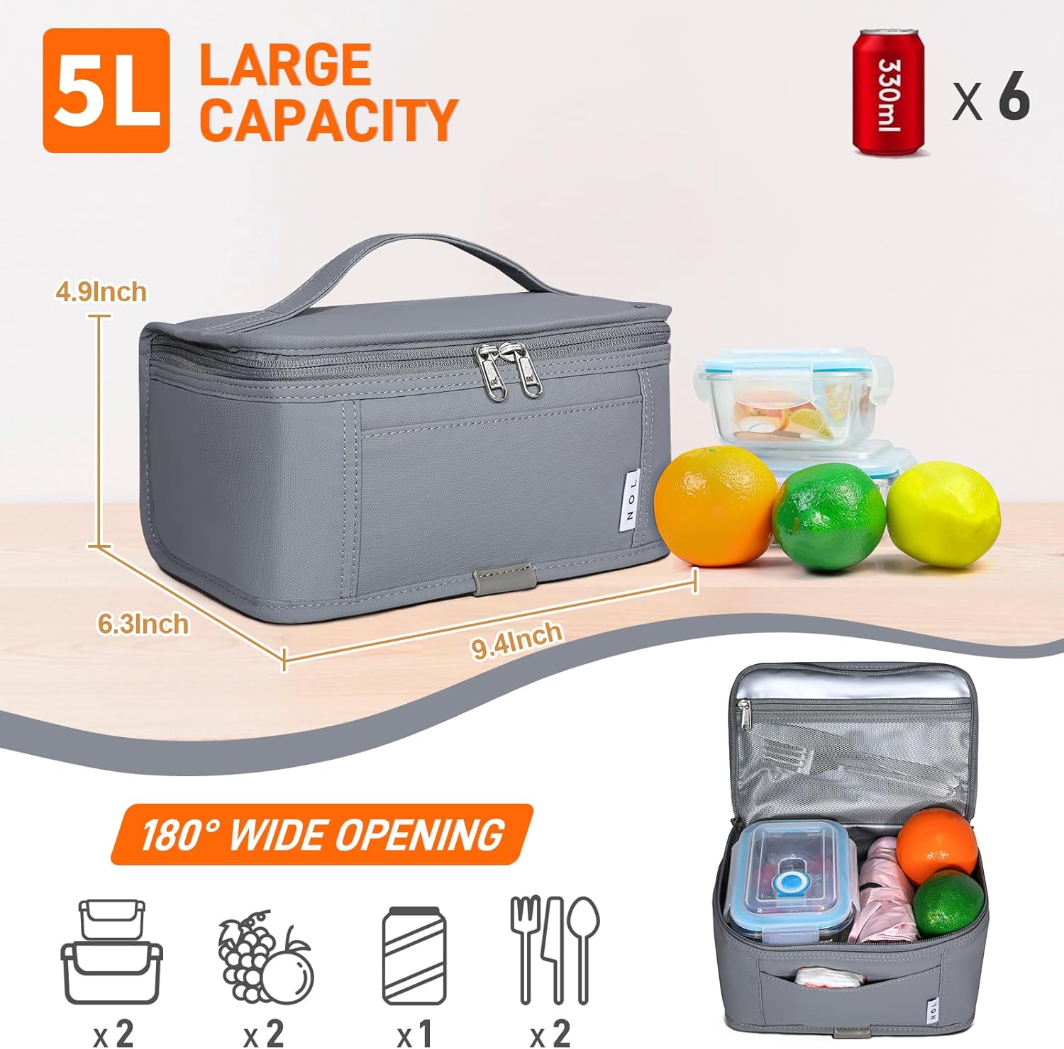 - Small Size: This SMALL lunch bag dimensions: 9.4IN x 6.3IN x 4.9IN, which can hold ONE PERSON'S meal. You can put a SMALL lunch box, some snacks, a flatware set and an ice pack or fit 6 cans of 330ml drinks in this mini lunch bag. Mini lunch bag have a soft handle and could easy put into backpack or large handbag. Perfect for work office, travelers. Please don't put ice cubes in lunch bag.