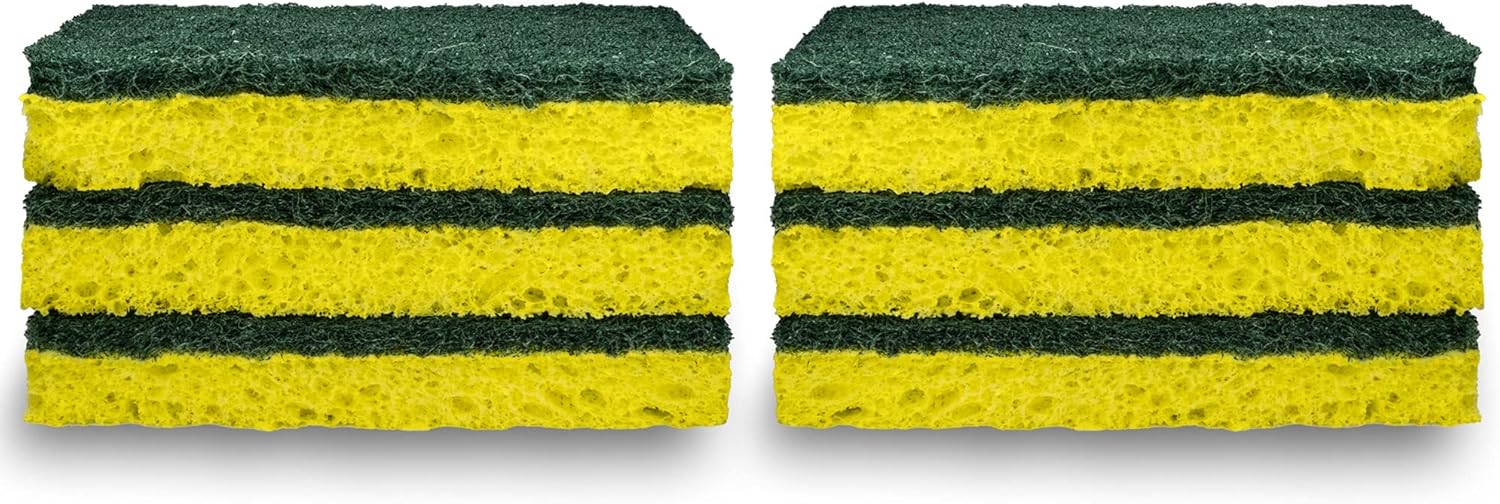 Amazon Basics Cleaning Sponges, Multipurpose, Heavy Duty Scrub Sponges, Yellow/Green, 12-Pack (2 Packs of 6)