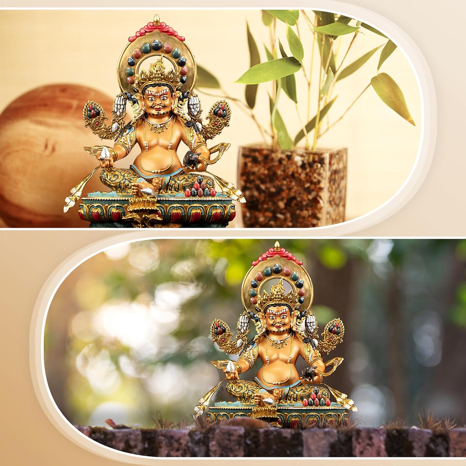 - 【Exquisite Craftsmanship】This handcrafted copper Buddha statue embodies the revered Tibetan Buddhist figure, Yellow Jambhala. Every detail, from the intricately designed robes to the finely sculpted features, and the meticulous hand-painted colors adds vibrancy and life to the Buddha statue, highlighting its exceptional craftsmanship.