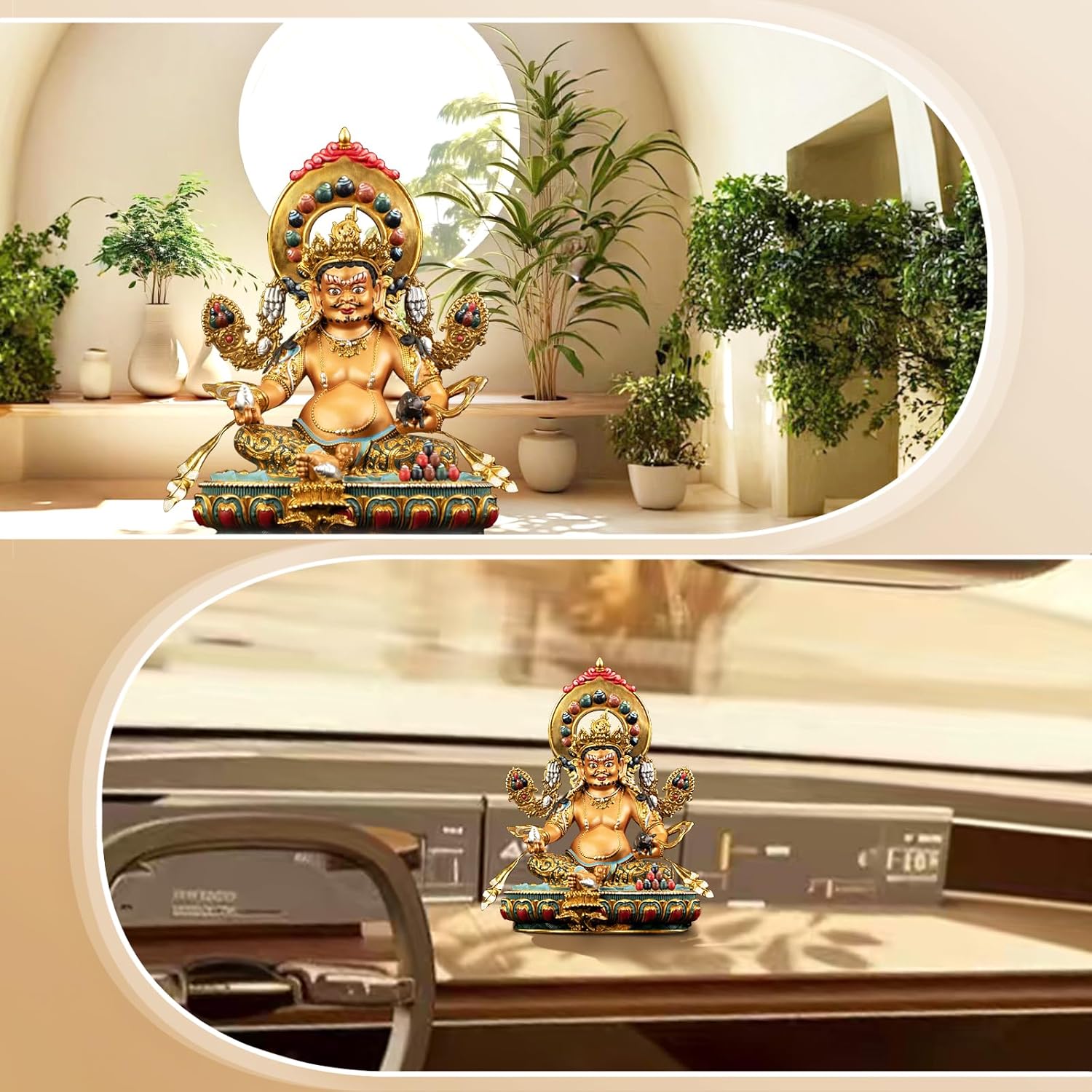 - 【Majestic and Serene】Yellow Jambhala's imposing yet serene stance captures a sense of calm authority. His deeply contemplative gaze and solemn expression are designed to ward off evil spirits, offering protection and peace. This majestic Buddha statue indoors radiates a powerful aura, filling your home with a sense of tranquility and spiritual presence.