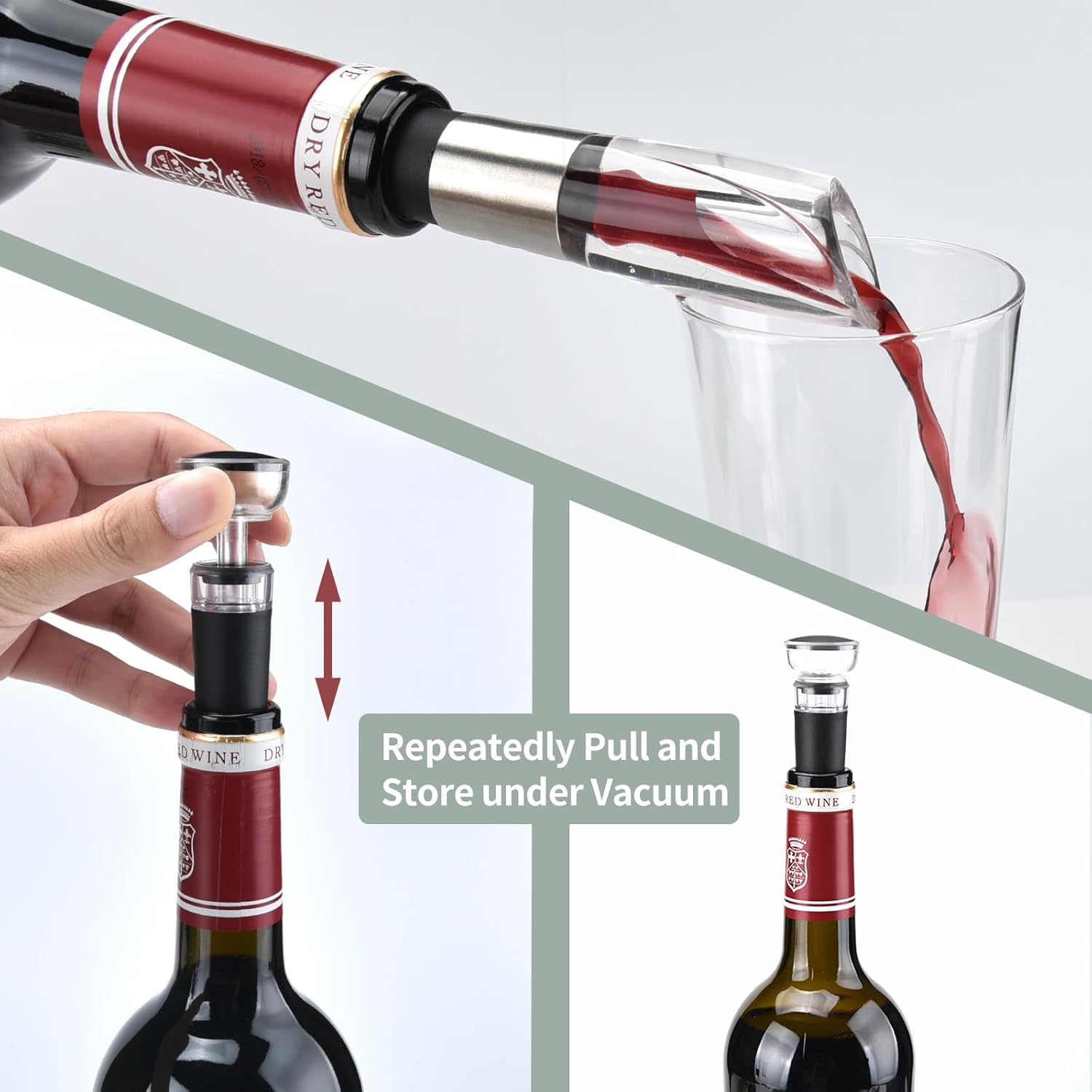- Value-packed Combo: Unleash the best wine accessories partners- wine aerator pourer spout and wine bottle stopper. Both cone-shaped designs are tailored to fit seamlessly on any champagne cocktail beer whiskey wine bottles. Silicone body ensures a strong seal, no drips, no spills.