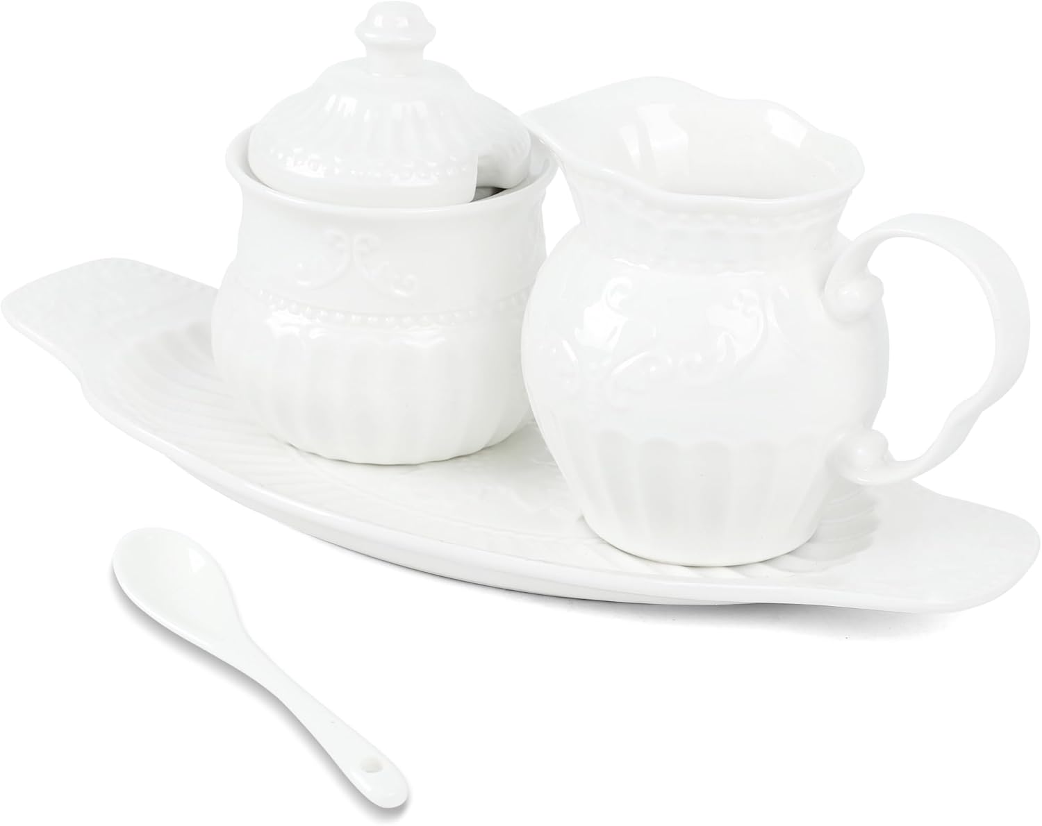 - 【Just the Perfect Size】The Sugar Bowl is 3.7" wide & 3.9" tall, making it ideal for holding about 10 oz of sugar. Meanwhile, the Cream Pitcher in this set measures about 3.1" tall & 2.9" wide, that holds approximately 8 oz of cream.
