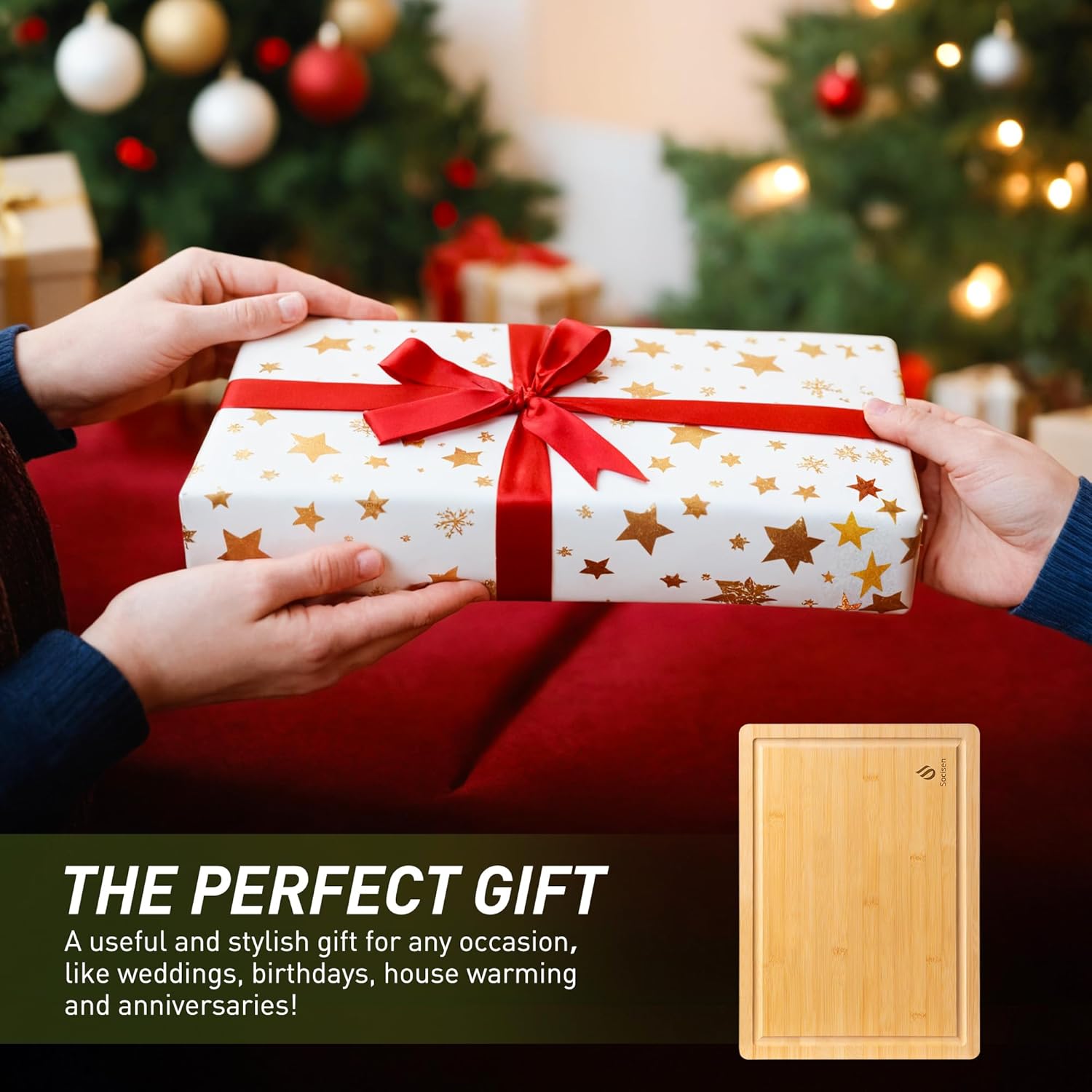 - Perfectly Sized for Versatile Use: Our bamboo cutting board has perfectly sized for Versatile Use. This extra-large bamboo cutting board, sized at 19.5 x 14 inches, is your kitchen's best ally for preparing large feasts. Its non-slip design ensures stability during carving and slicing of turkeys, prime rib, and more. The generous surface area keeps meal prep organized and clutter-free, making it a must-have for any cooking enthusiast. Perfect for various kitchen tasks and charcuterie boards.