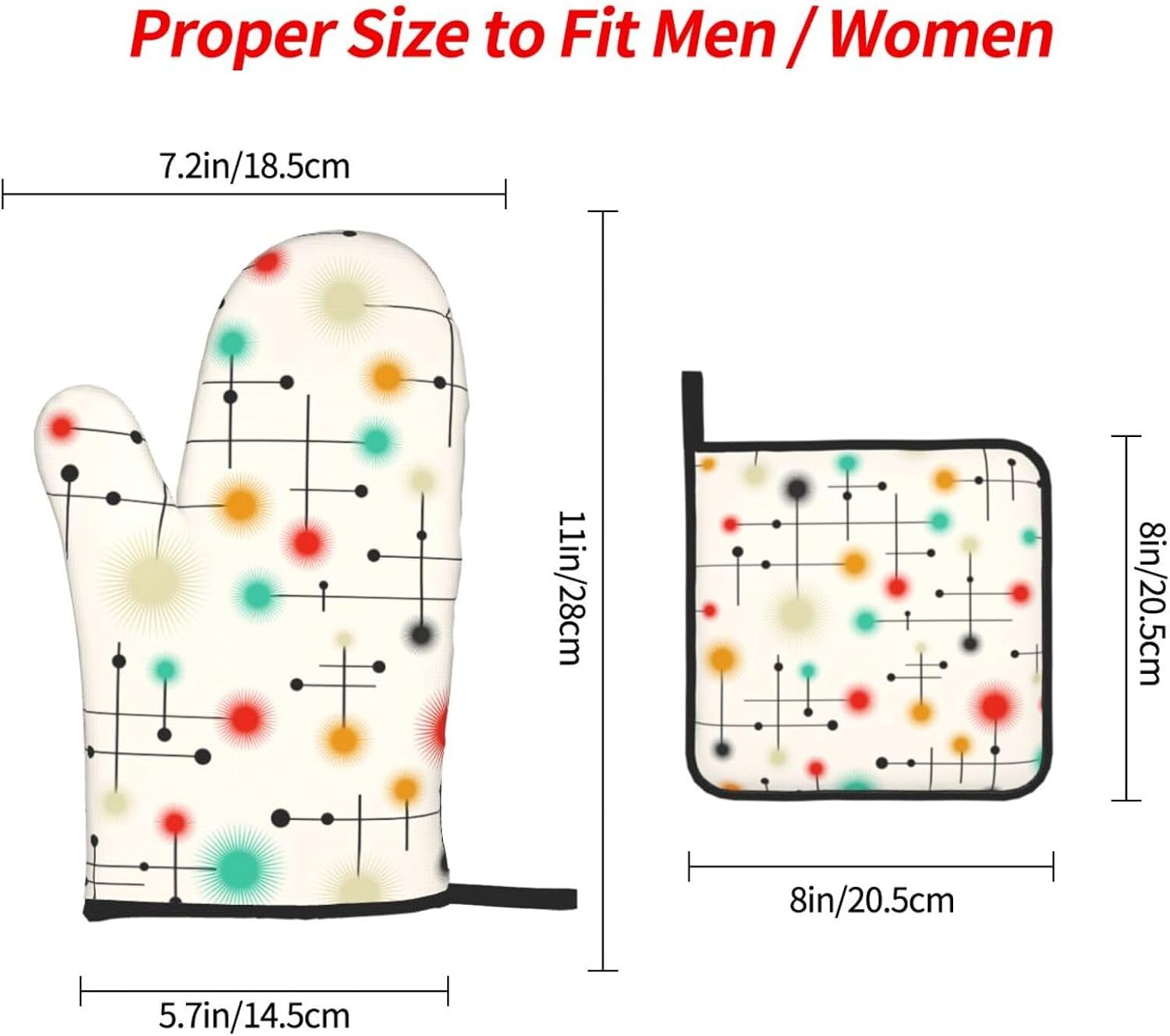 Mid Century Modern Oven Mitts and Pot Holders Sets of 3 Heat Resistant Non Slip Retro Kitchen Gloves Hot Pads for Cooking BBQ Grilling Baking