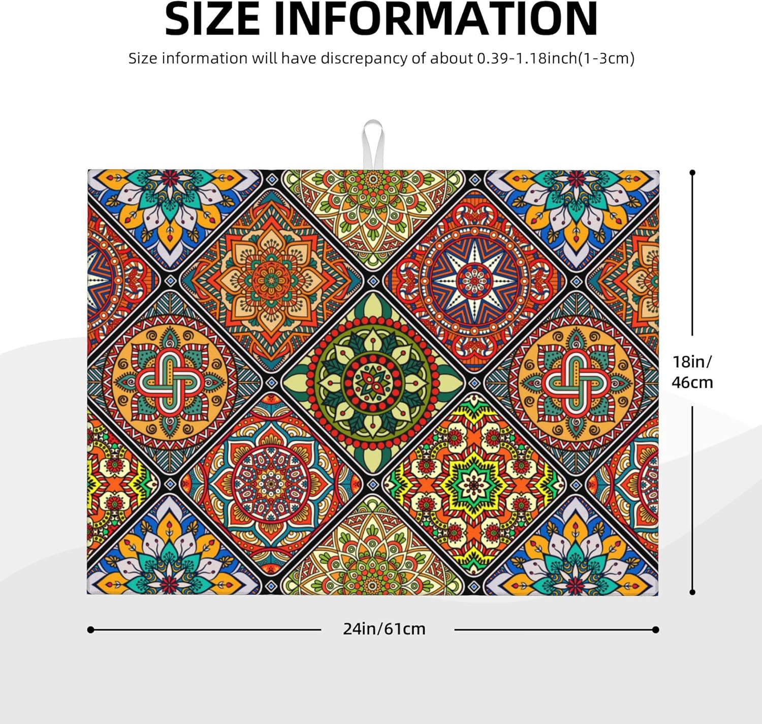 Retro Dish Drying Mat for Kitchen Counter Mandala Colorful Dish Drainer Rack Mats Boho Decor Washable Absorbent Reversible Microfiber Drying Pad Kitchen Accessories 18"x24"