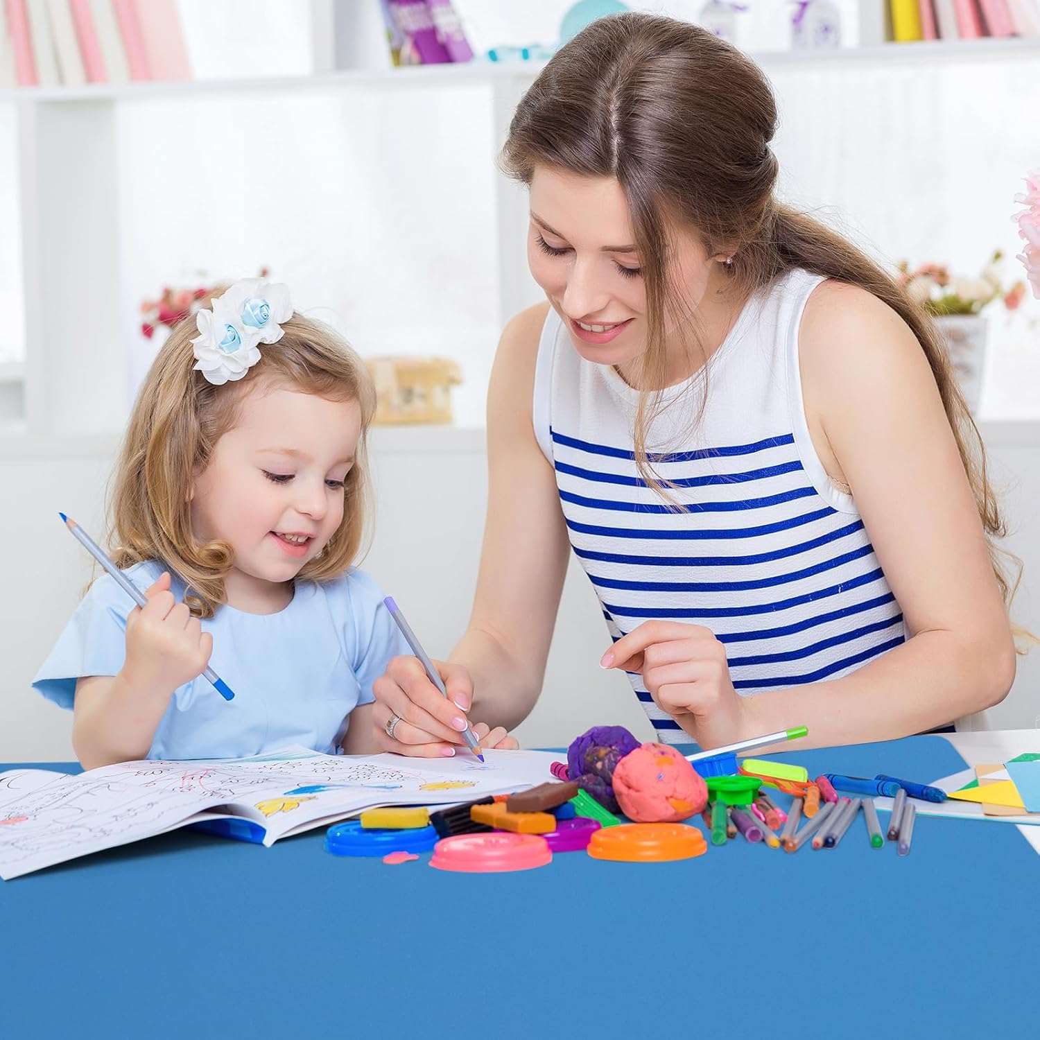 Silicone Mat Heat Resistant Mats for Countertop, Large Silicone Mats for Kitchen Counter Crafts Workbench Table, Size 48x24 inches Thick 2mm,Rolled Package,Light Blue