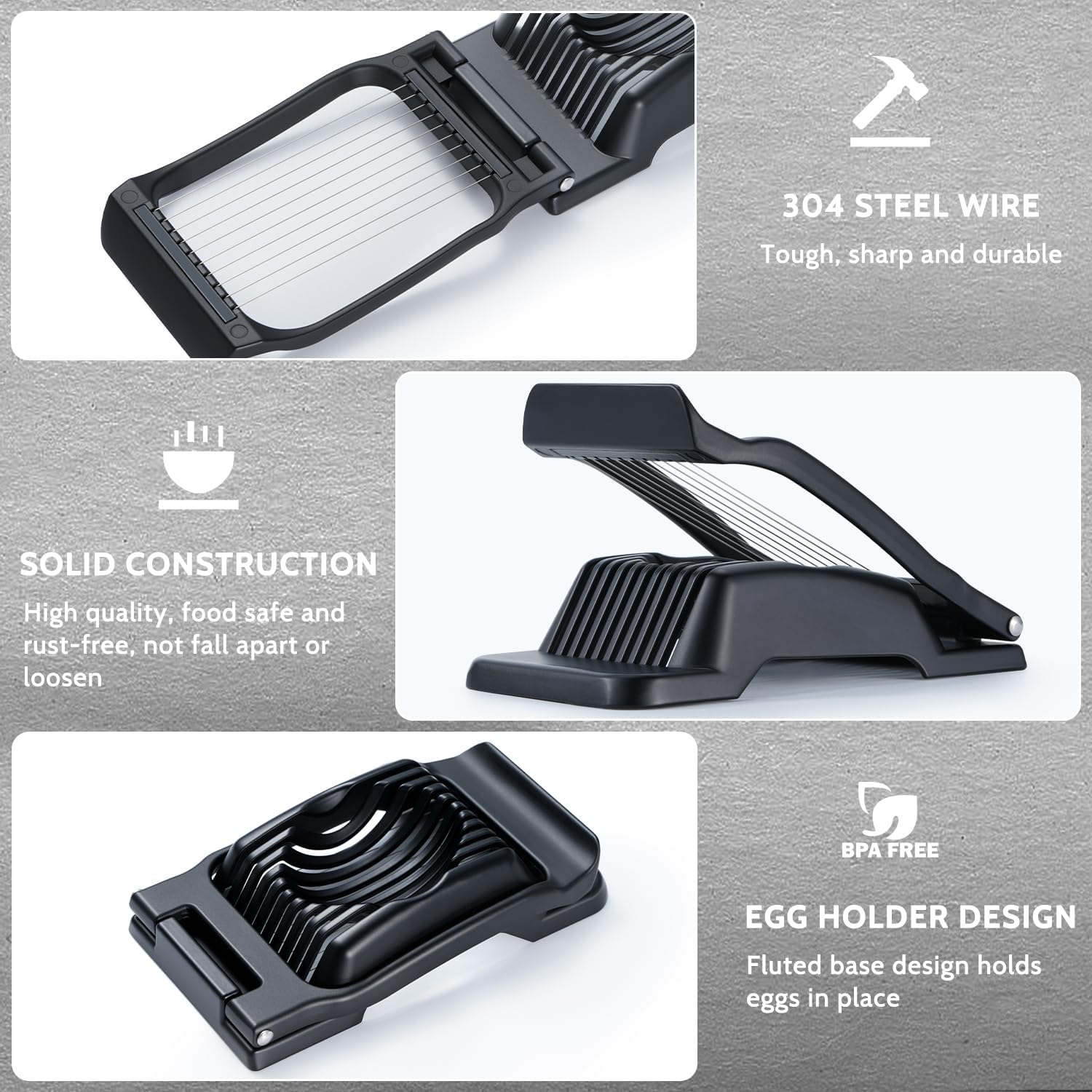 Sopito Heavy Duty Stainless Steel Wire Egg Slicer for Hard Boiled Eggs & Strawberry Other Soft Food, Black