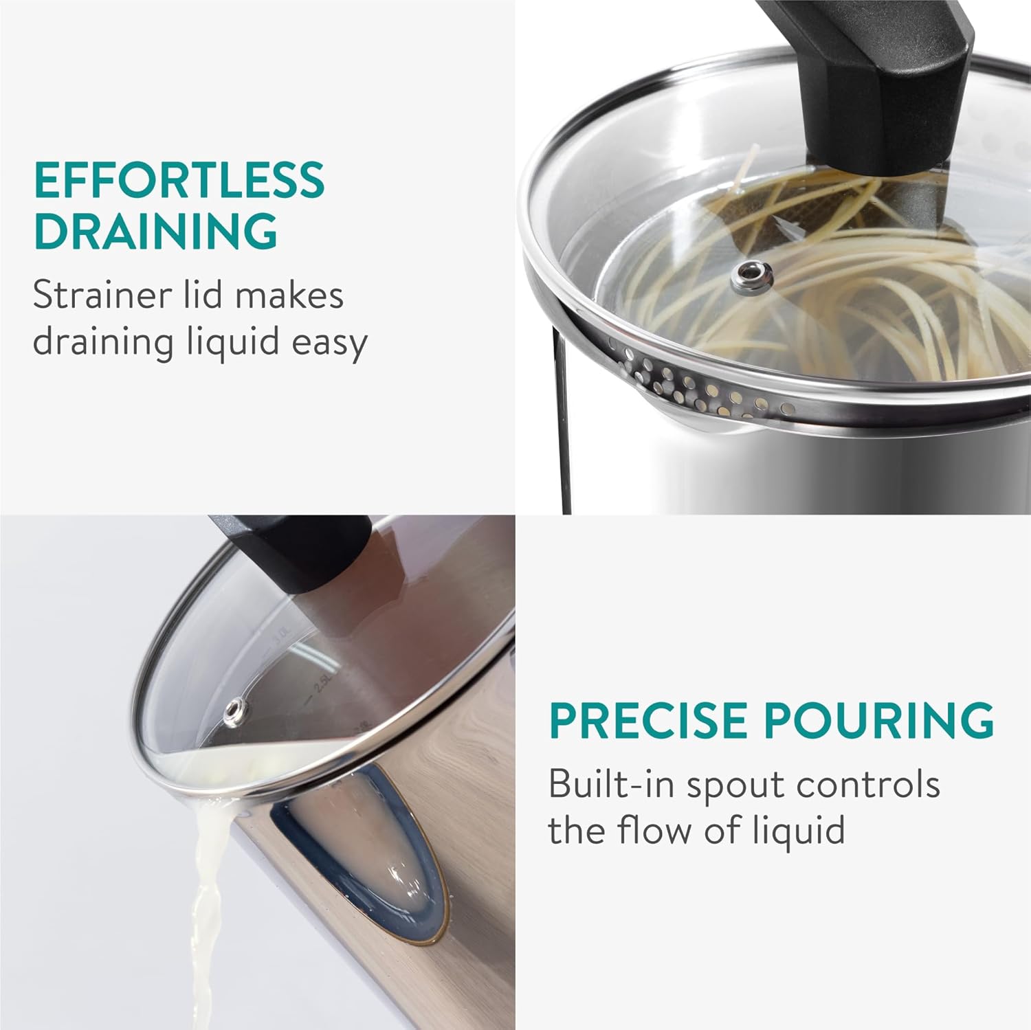 - Sturdy and Safe: Designed with safety in mind, our stainless steel boiling pot with strainer basket has handles that stay cool to the touch. It also has a secure lid to prevent spills and splatters to keep you free from burns.