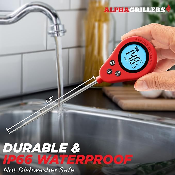 - Water-Resistant | Perfect digital cooking thermometer for meat, our digital meat thermometer for food of any kind is water-resistant IP66 rated and can be washed and cleaned under running water.