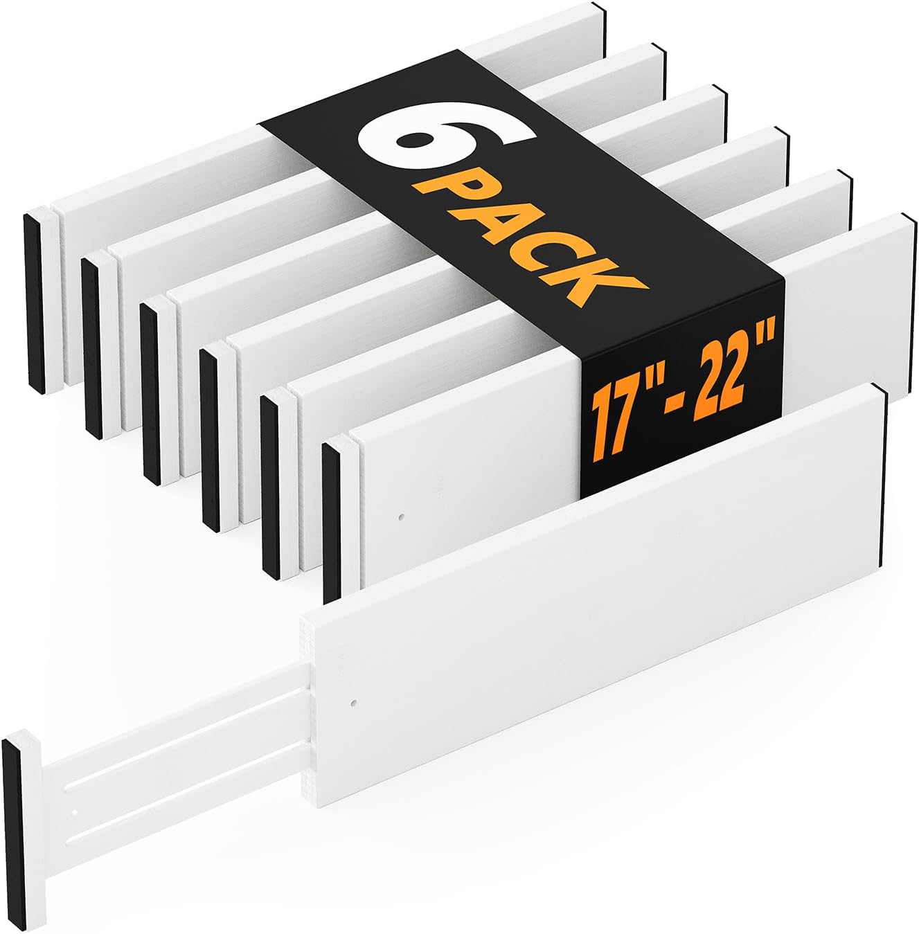 SpaceAid Bamboo Dresser Drawer Dividers 6 Pack, 4.65“ High Adjustable 17“-22” Drawer Organizers, Expandable Organization for Clothing, Clothes, Dressers, White