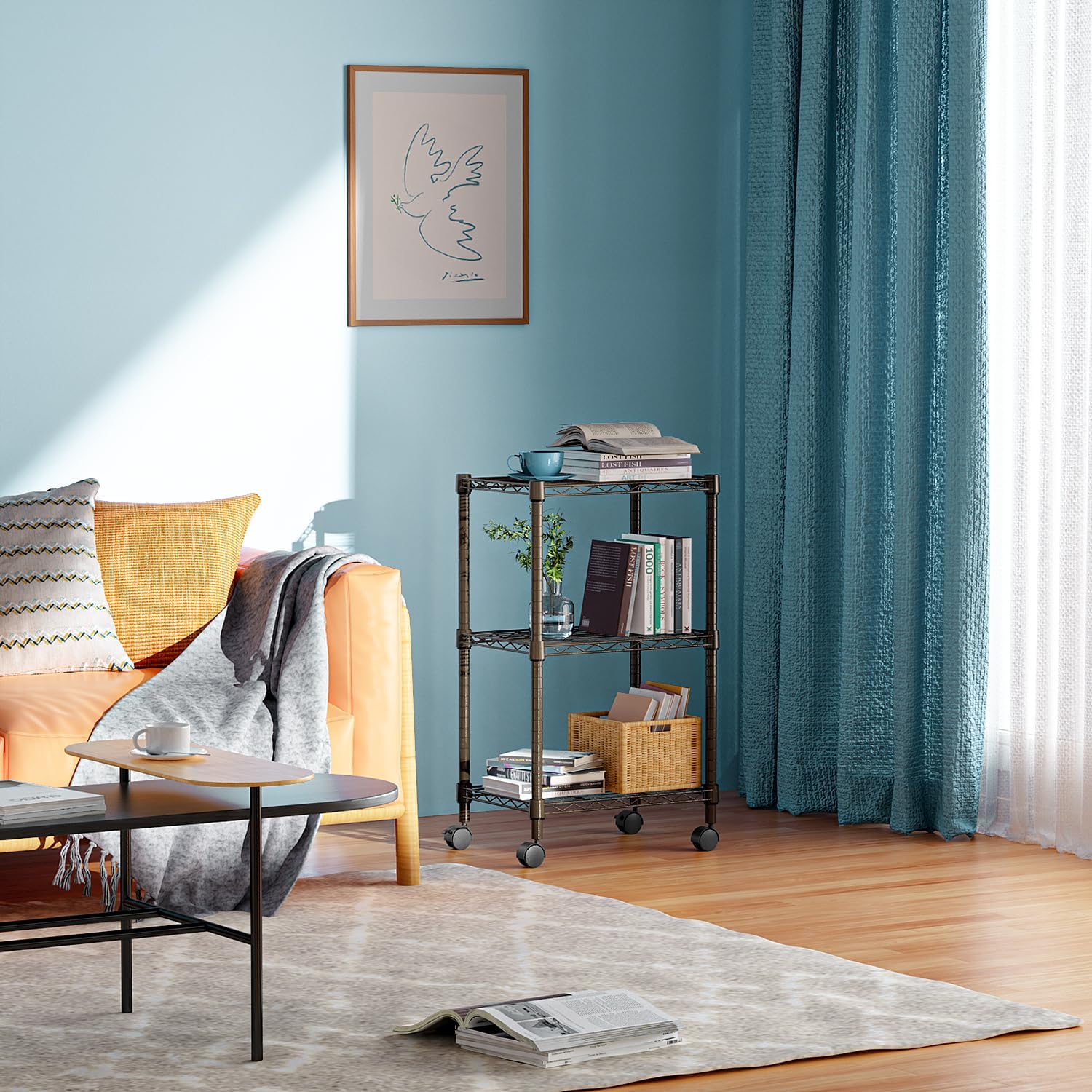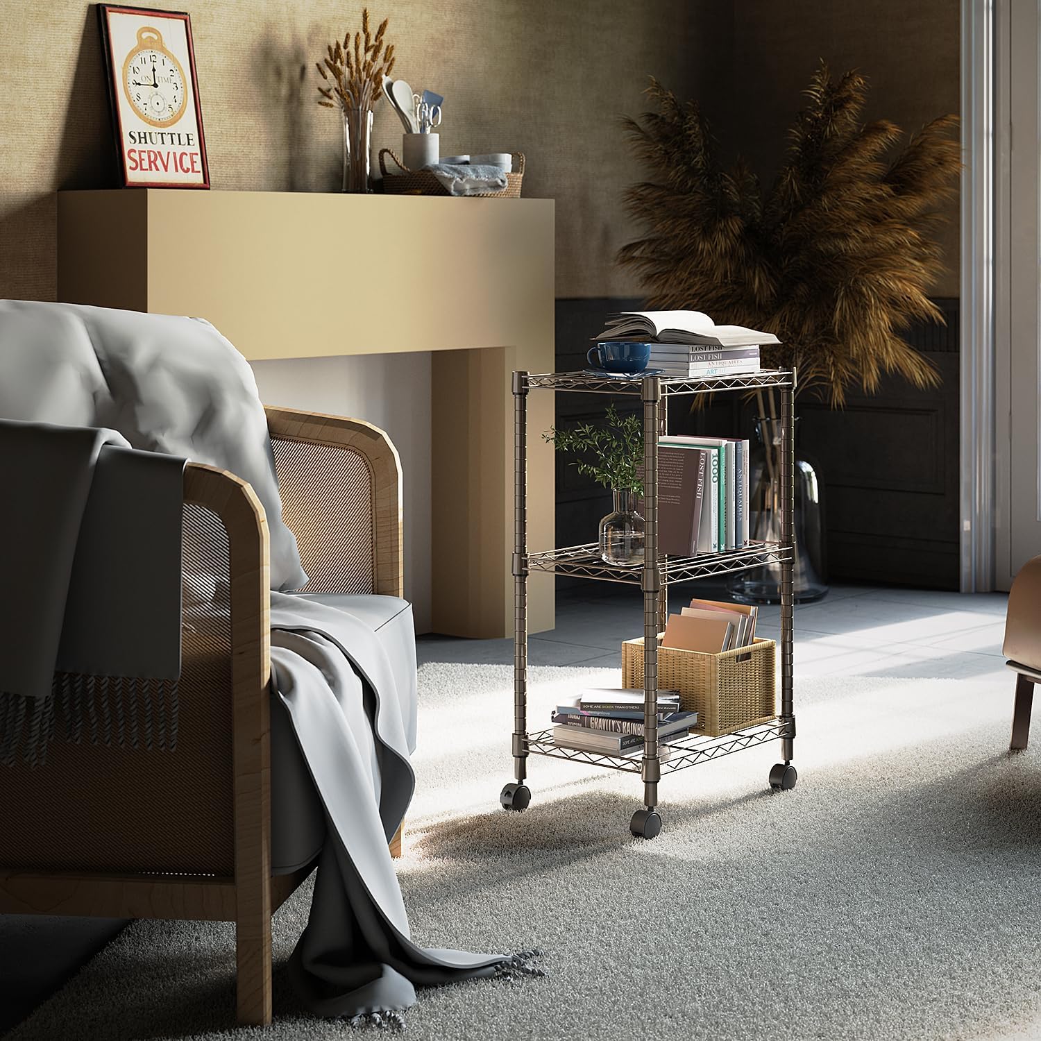 3 Tier Shelf Metal Storage Shelves Wire Rack Closet Organizers with Wheel for Garage Kitchen Bathroom Laundry Brown 11.8" D x 17.7" W x 29.8" H