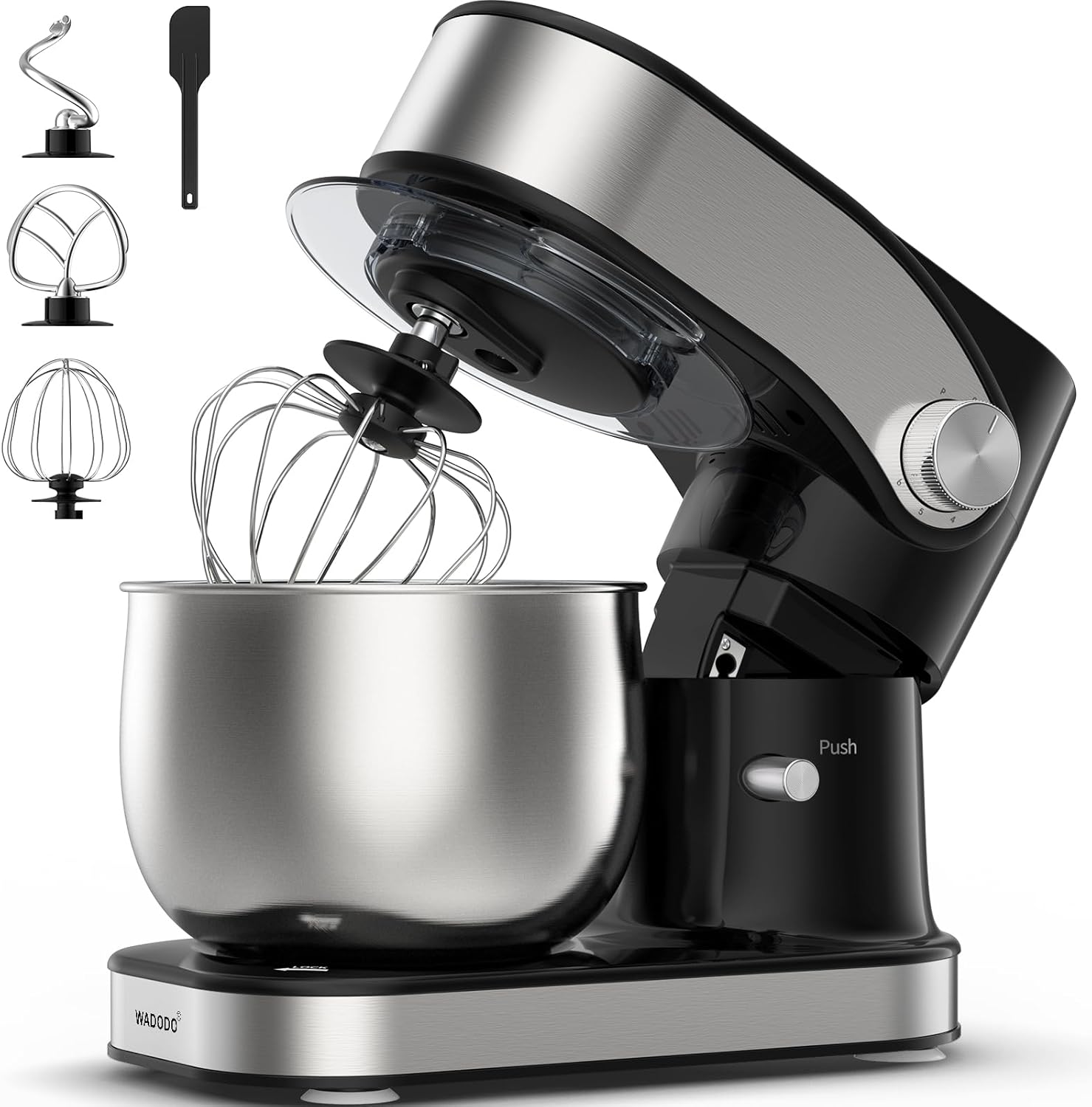 WADODO Stand Mixer, 3.2Qt Small Kitchen Mixer,6 Speeds Electric Food Mixer,Lightweight 304 Stainless Steel Kitchen Mixer with Bowl, Egg Whisk, Dough Hook, Flat Beater & Splash Guard - for Daily Use