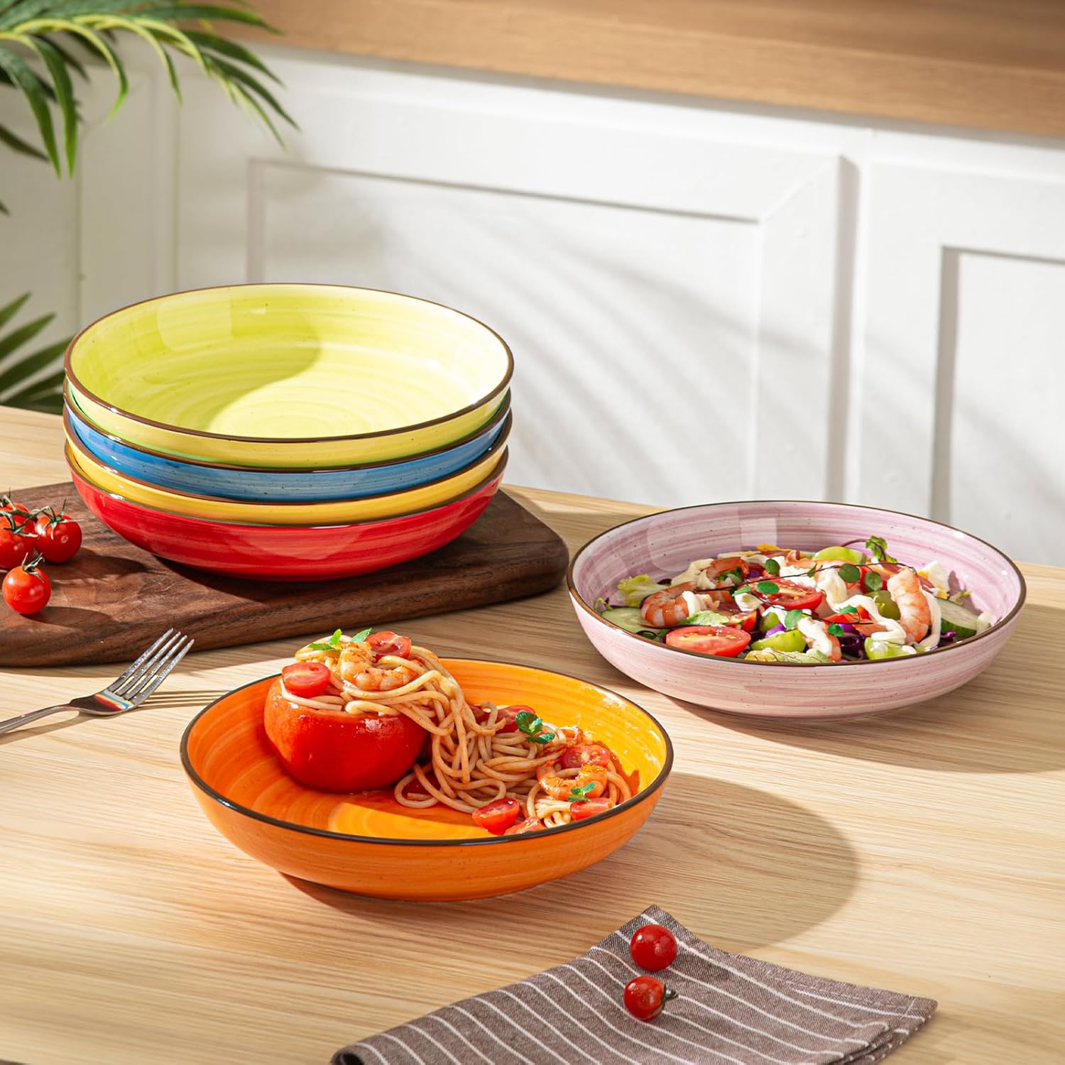 - Multifunctional for Any Dish: The versatile 8.5" bowl is not only ideal for pasta but also serves perfectly as extra large salad bowls, making it an essential addition to any dinnerware set. Its thoughtful design allows it to be used for soups, stews, fruit, or desserts, seamlessly fitting into both everyday meals and special occasions. Pair it with plates for a complete and elevated dining experience.