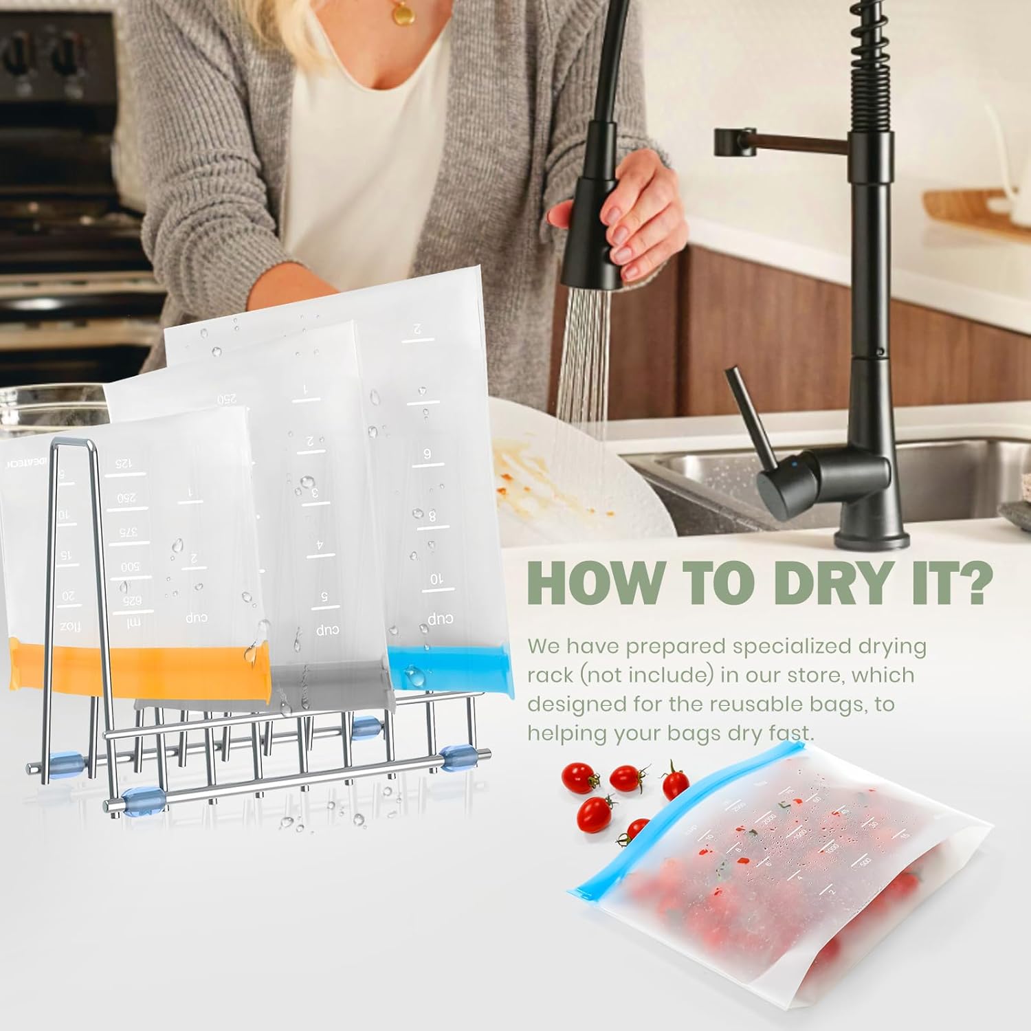 - DISHWASHER SAFE: These reusable food storage bags can be cleaned in the dishwasher. Just turn the bag inside out before washing. To extend their lifespan, please skip high-temperature functions, can up to 70 degrees Celsius