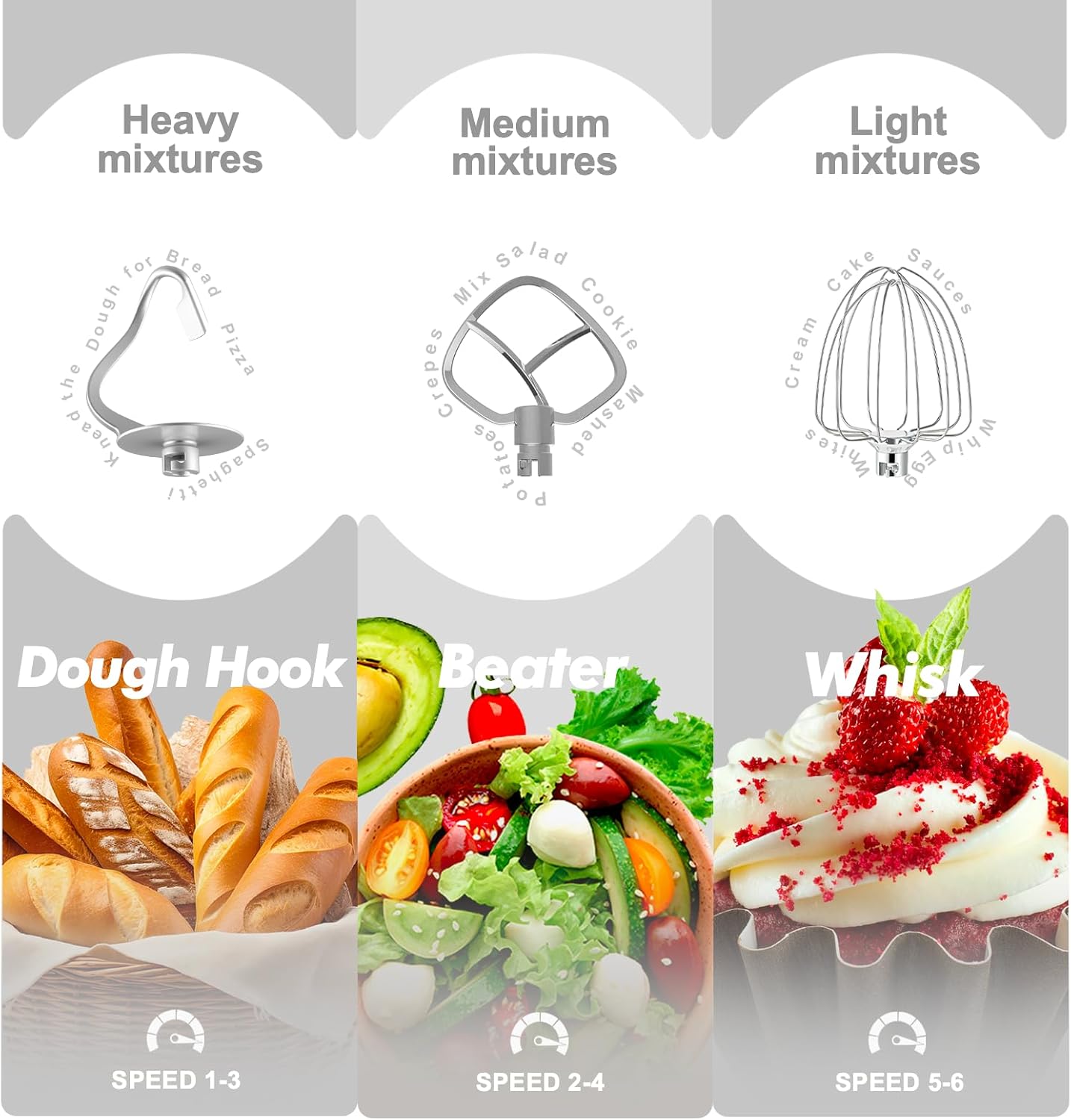 - 660W Powerful Motor: This mixer is equipped with a 660W high-performance pure copper motor, upgraded motor has higher mixing efficiency and fully knead and mix various ingredients and overheating protection device makes it safer to use