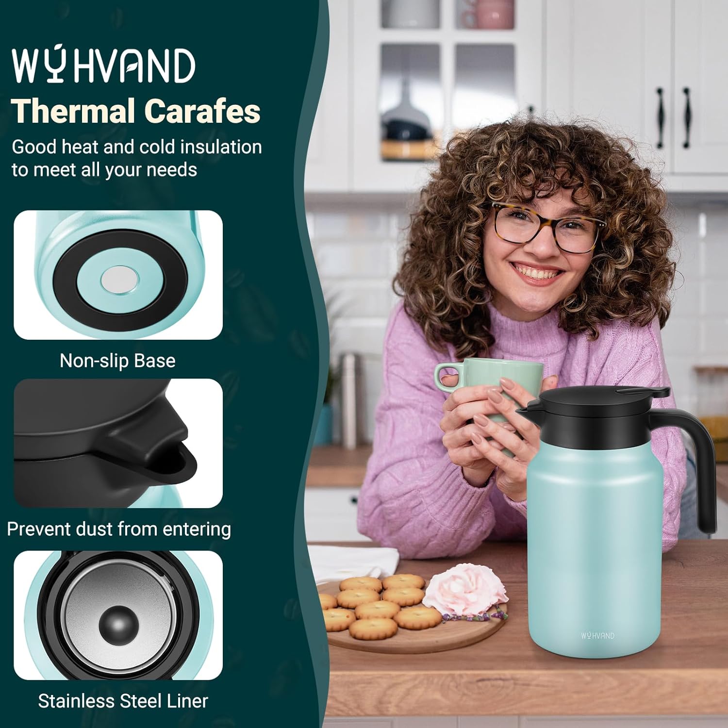 51Oz Thermal Coffee Carafes For Keeping Hot/Cold, Stainless Steel Coffee Carafe, Dustproof Insulated Water Carafe for Party/Home,Blue