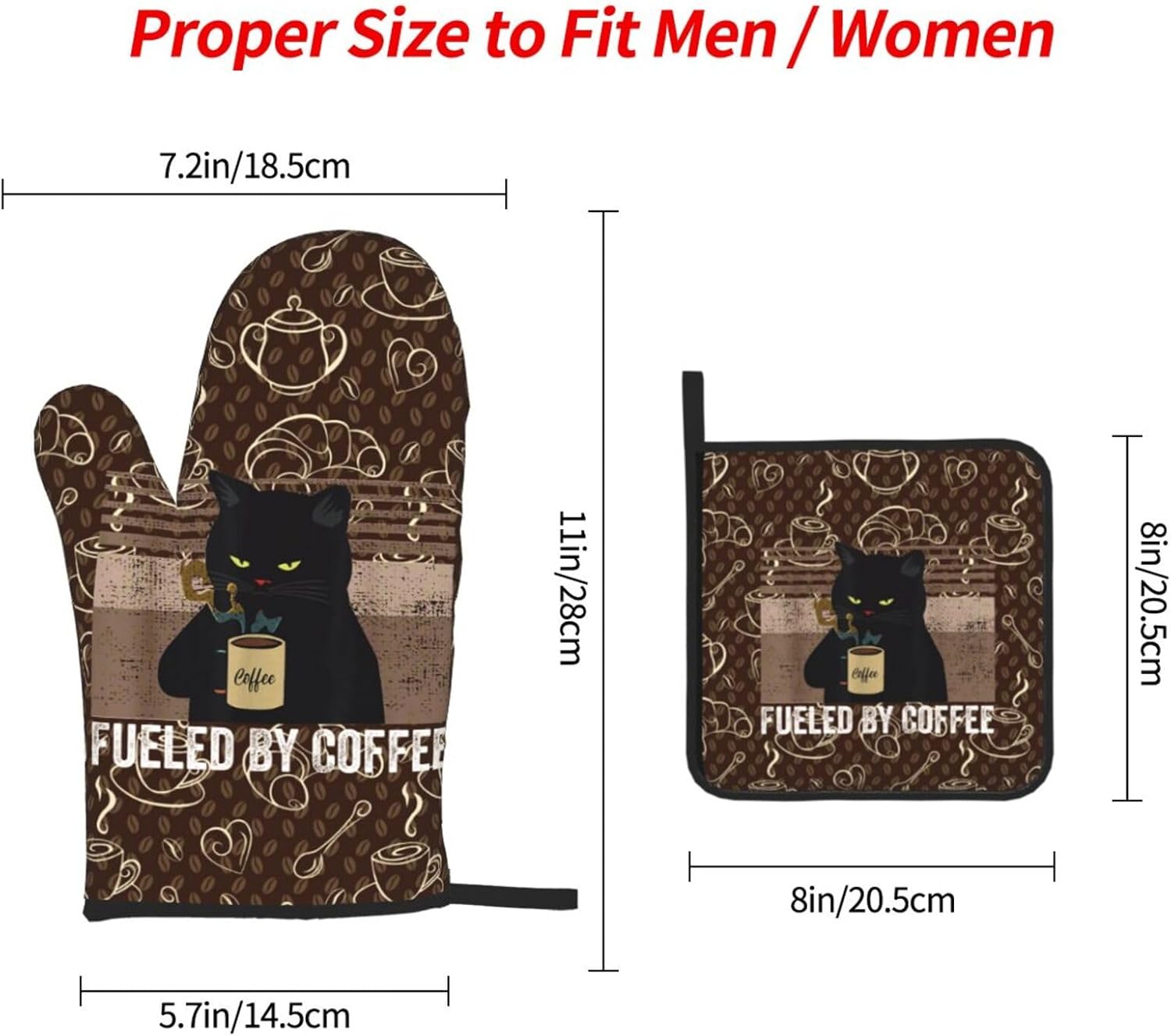 Vintage Cat Oven Mitts and Pot Holders Sets of 3 Retro Coffee Hot Pads Oven Gloves Heat Resistant Non Slip Washable for Kitchen Cooking Grilling Baking