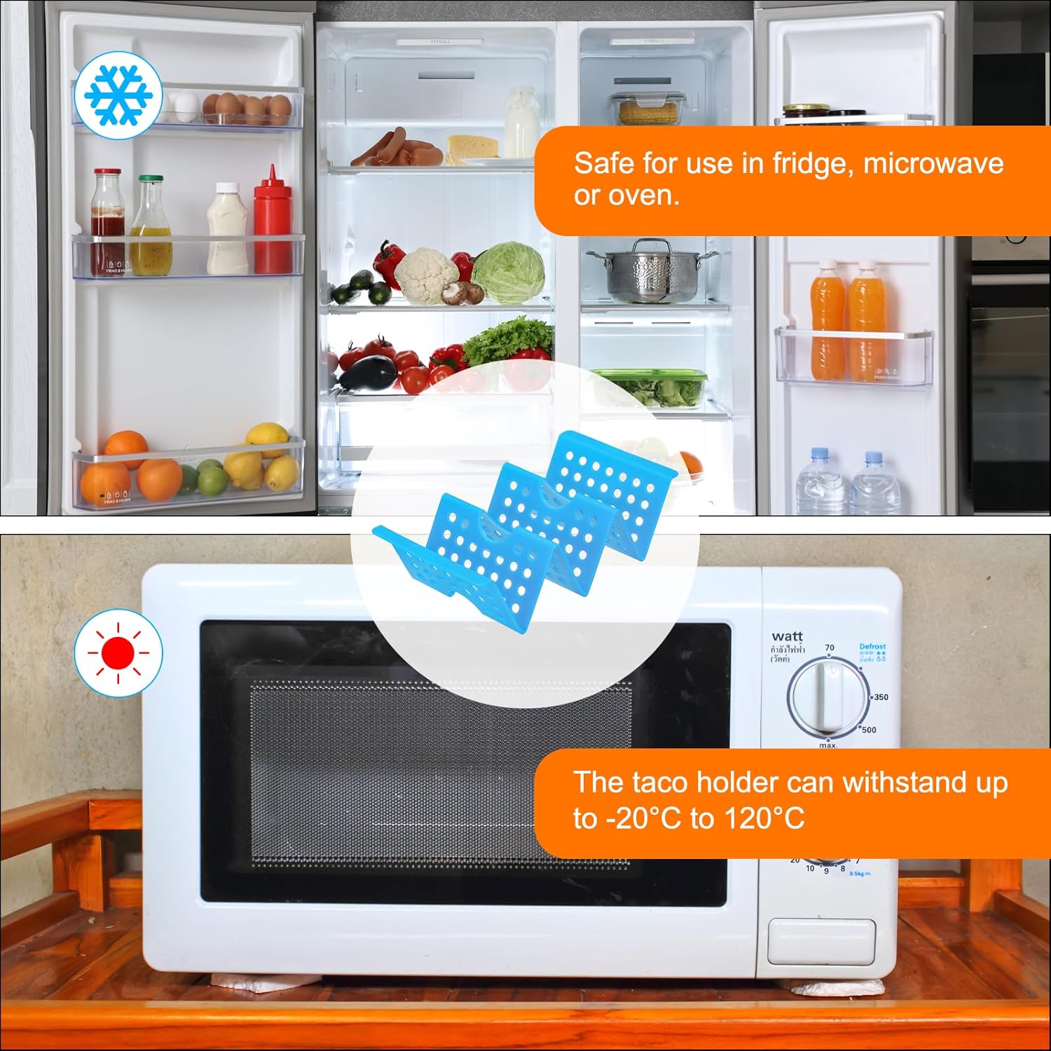 - [Design] - Small holes even distribution on taco stands make taco heat up evenly. The curved design prevents the taco from getting wet or falling off.