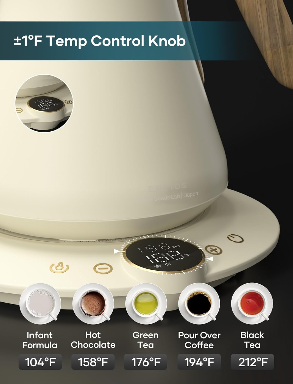 Electric Kettles, INTASTING Gooseneck Electric Kettle, ±1℉ Temperature Control, Stainless Steel Inner, Quick Heating, for Pour Over Coffee, Brew Tea, Boil Hot Water, 1500W/0.9L (Morandi White)