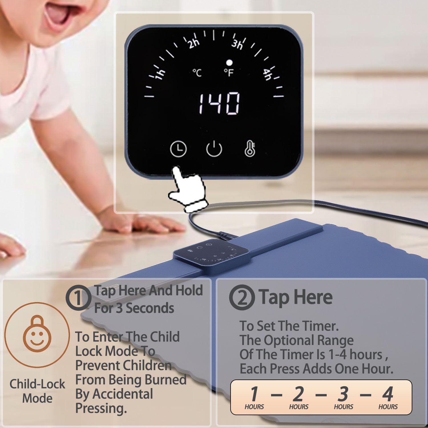 - 💗Adjustable 5-Level Temperature Control : This Silicone Electric Heating Tray Providing 5 Temperature Levels From 140℉ to 212 ℉ (140℉-158℉,-176℉-194℉-212℉), Meeting Various Needs Such as Keeping food warm, defrost, warm milk ,Fermenting Dough etc., Making It Convenient For You To Efficiently Prepare Meals and Enjoy Precise Temperature Adjustment For Heating and Keeping Food Warm , Perfect For Buffets, Parties, and Gatherings.