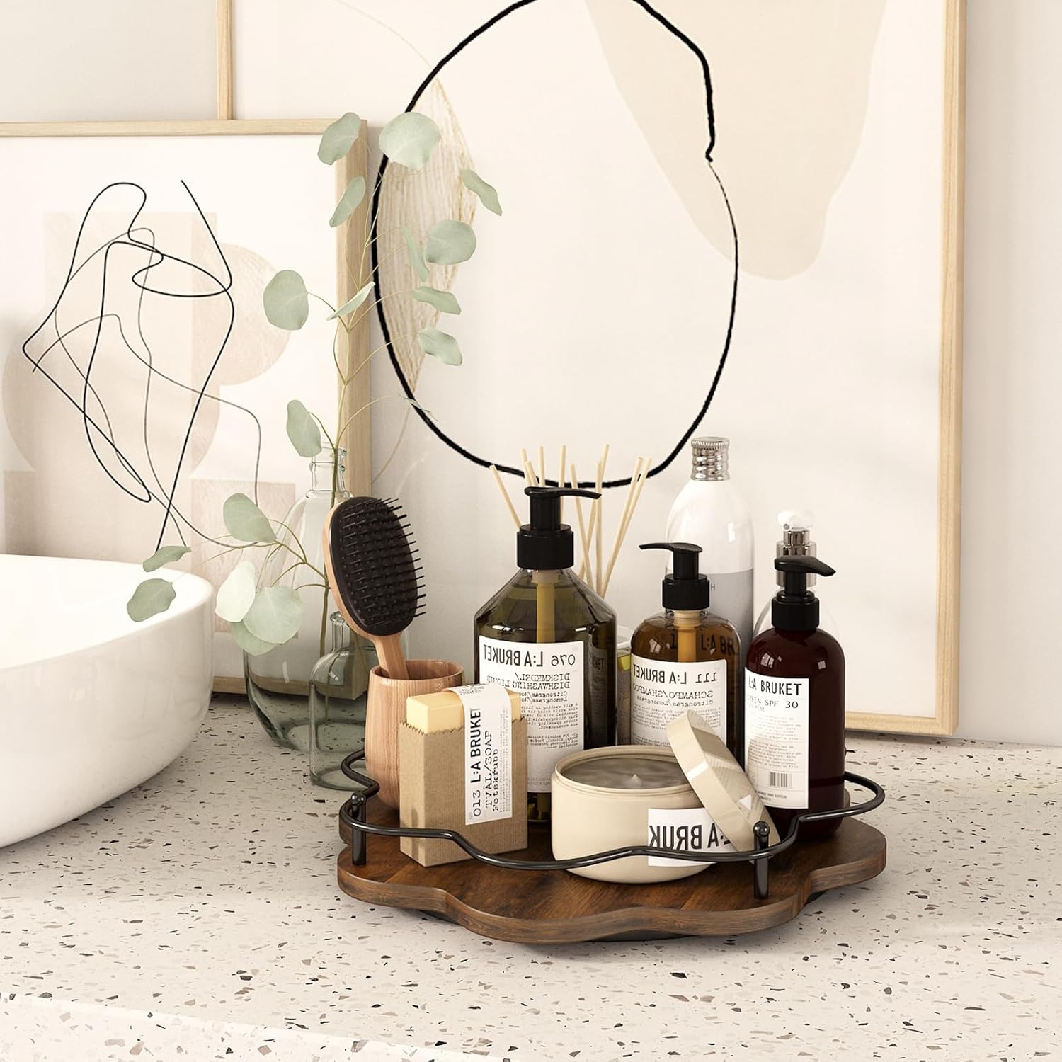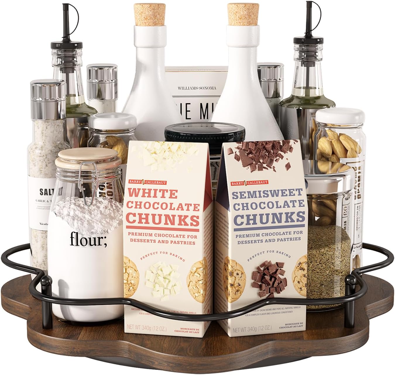12" Lazy Susan Turntable Organizer,Round Wooden Lazy Susan Organization and Rotating Spice Rack for Dining Table,Pantry,Kitchen Countertop,Vanity,Cupboard and More.Vintage Wood(Petal Shape)