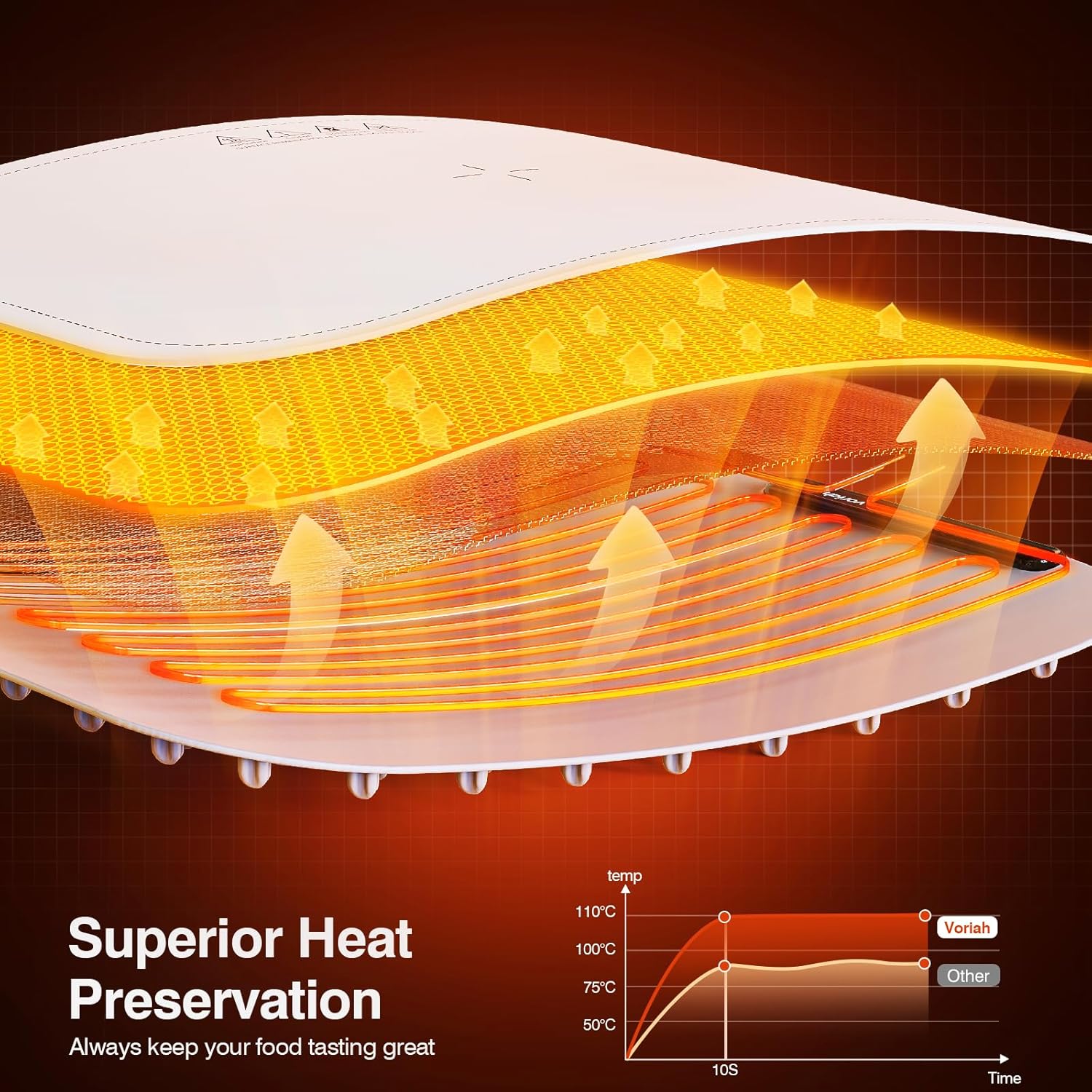 Warming Mat for Food, Voriah Electric Warming Tray with 99H Timer & 8 Temperature Settings, Foldable Food Warmer with °C/°F Switch, Keeps Food Warm at Buffets, Sabbath, Family Gatherings(White)