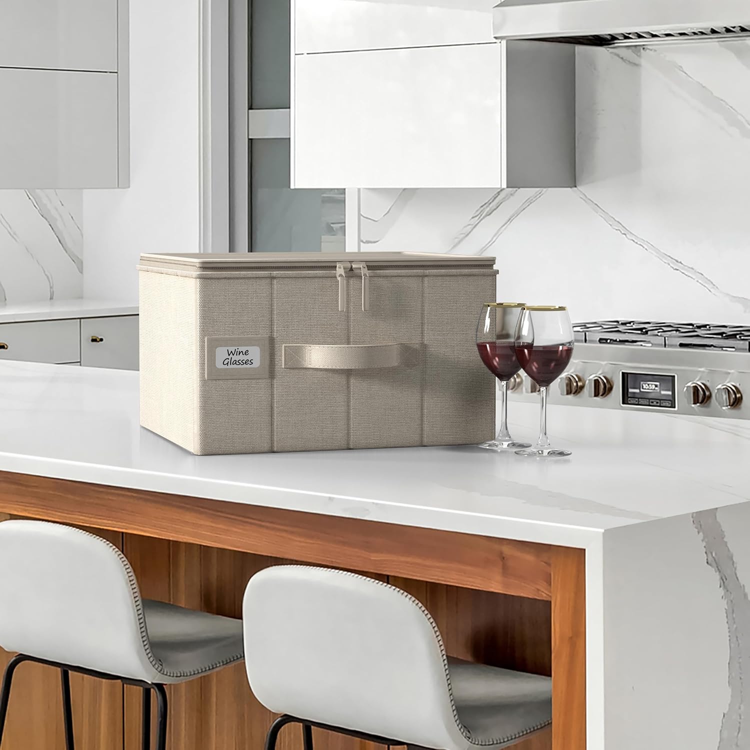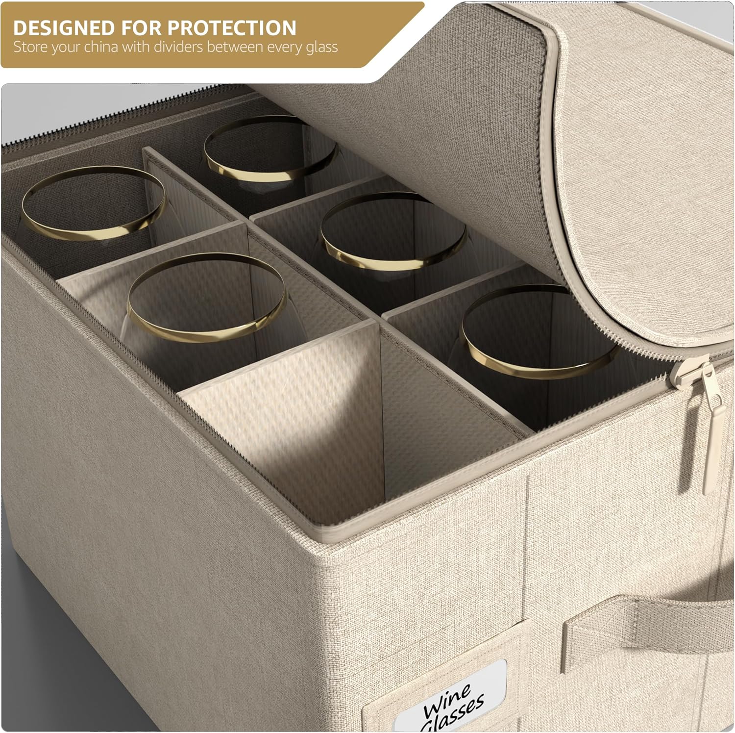 - China Stemware Storage Case (Beige): This wine glass storage box with dividers helps keep cherished stemware in mint condition, dust-free, and ready to entertain - Wine box fits 12 wine glasses - Measures approximately 15.75” L x 12” W x 10” H
