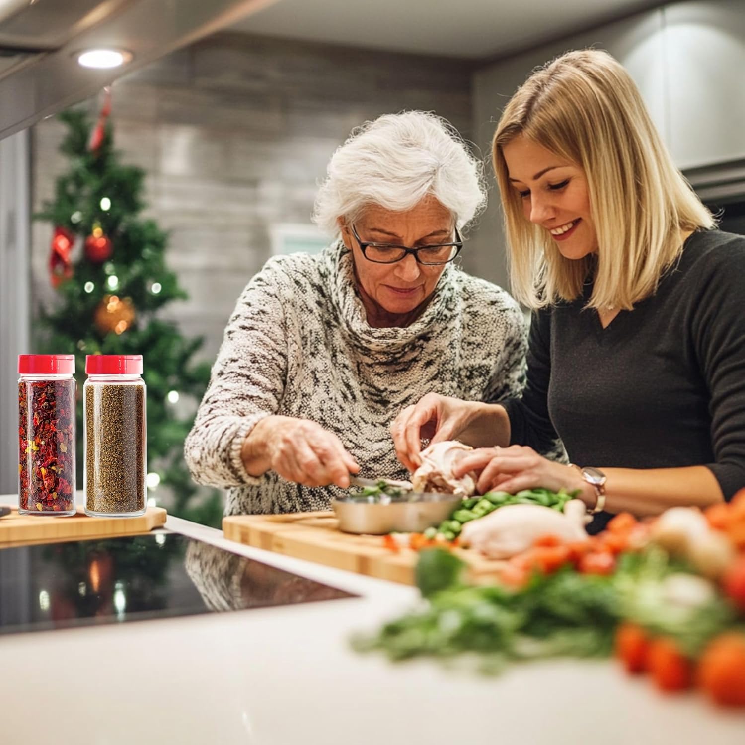 - VERSATILE HOME ESSENTIALS: Glass Spice Shaker with Lids are modern, minimalist home must-haves. Our Large Spice Jars can be used for Parmesan Cheese, Sugar Shaker Dispenser, spice Container, and more.