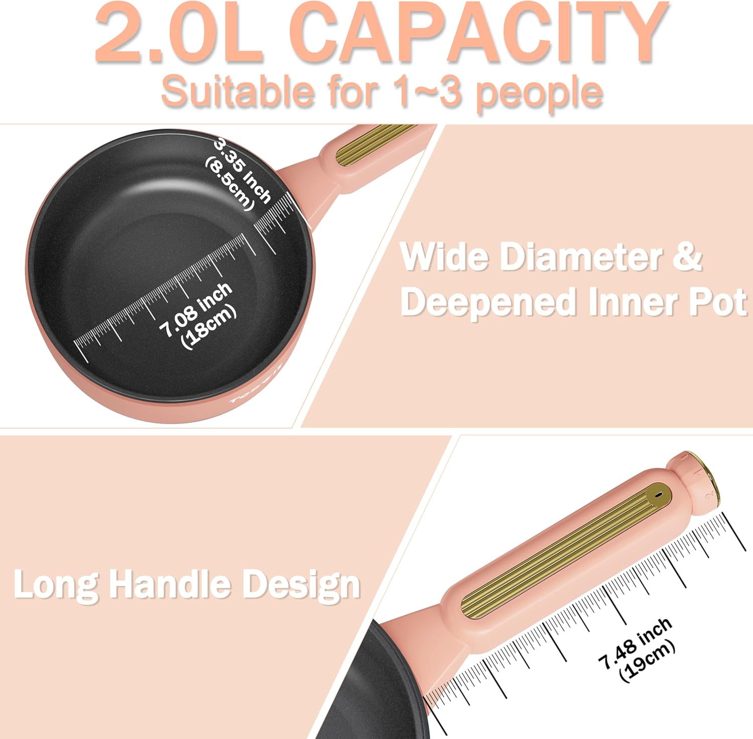 TOPWIT Hot Pot Electric, 𝟐𝐋 Electric Pot, Non-Stick Portable Cooker, Portable Hot Pot, Sauté Pan for Steak, Egg, Fried Rice, Ramen, Soup with Dual Power Control (Silicone Spatula Included), Peach
