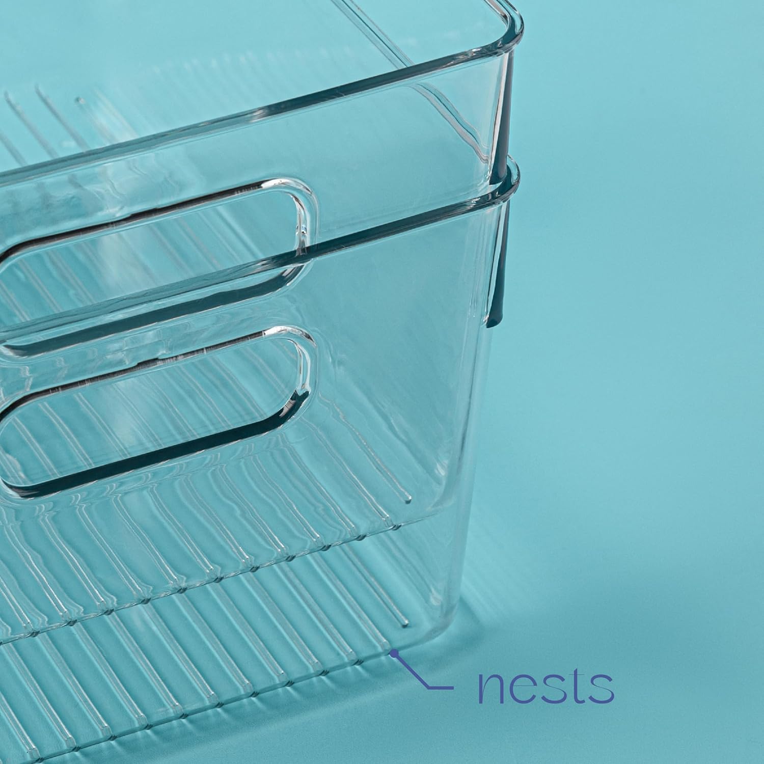 - Perfect for organizing: These bins are perfect for creating calm, clean and organized spaces. Great for upper cabinets & pantry shelves, for organizing fridge/freezer, cabinet storage or anywhere in your home. Ideal to use for yogurts, food, pouches, cans, dry goods, fruits and vegetables, drink boxes. Also good for towels, utensils, candles, forks, spoons, skewers, straws & makeup.
