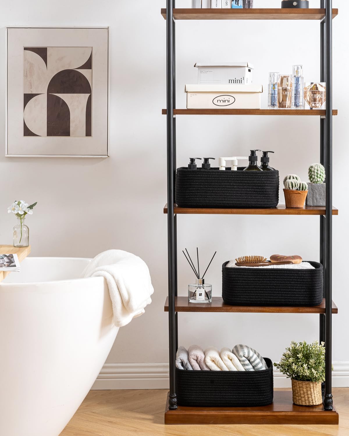 Small Woven Basket, 13.5 x 9.5 x 5 Inches, Storage Basket for Organizing, Cute Small Rope Shelf Closet Cube Storage Bins Baskets for Shelves, Dog Toy Gift Baskets Empty, 3 Packs, Black