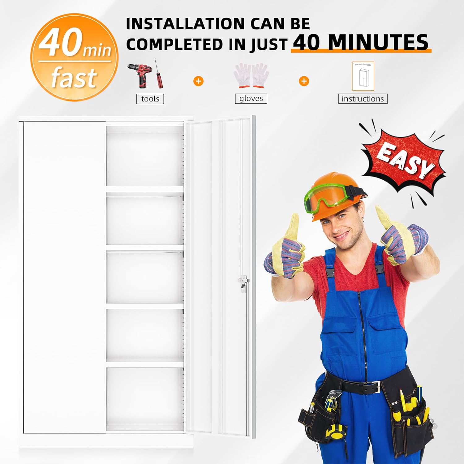 - 【High Security】: Tall steel storage cabinet with 2 door and 4 adjustable shelves to accommodate items of all sizes.The locking file cabinet with 2 Locking keys and 3-pointed locking system can highly secure your belongings.Whether you want to store office files, garage tools, or other large and heavy items, it's no problem.