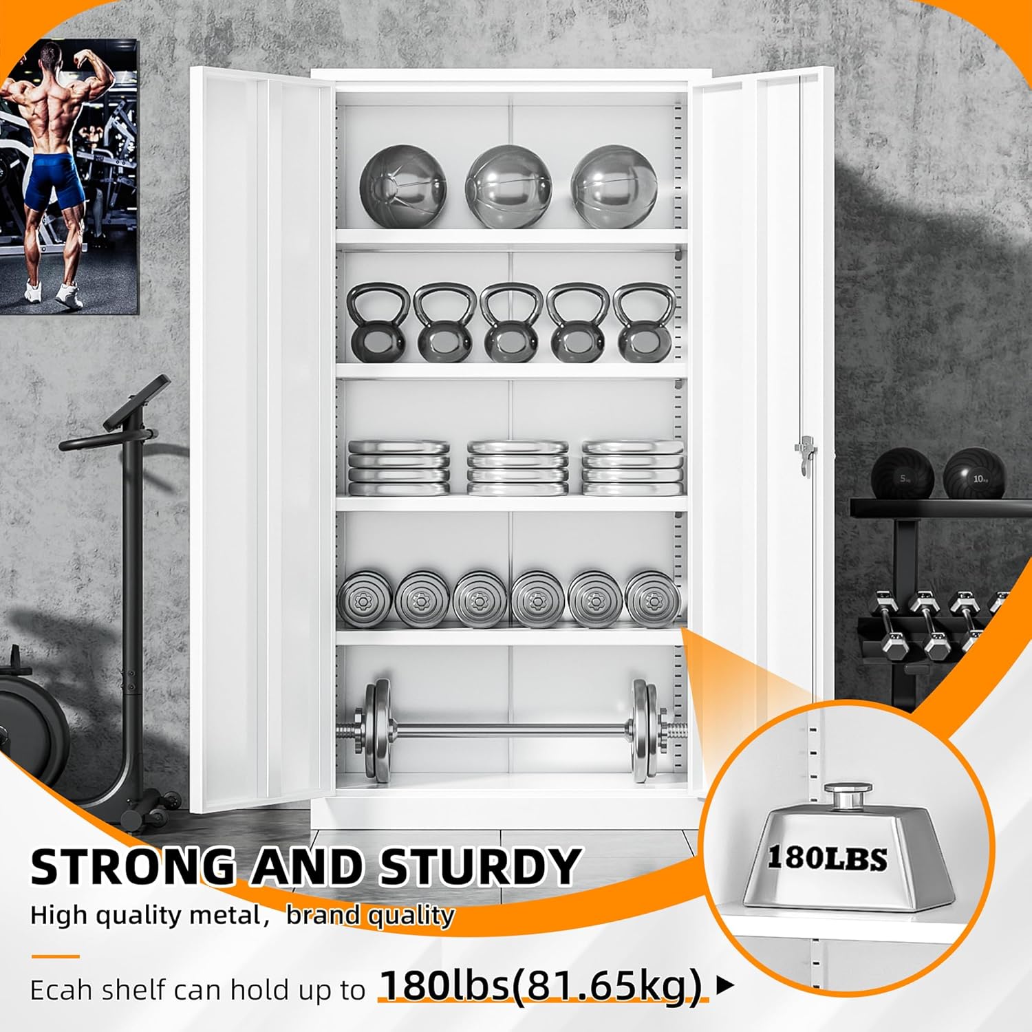- 【4 Adjustable Shelves】:The metal cabinet is furnished with 2 doors, while the tool cabinet features 4 adjustable shelves to enhance its durability.Each shelf of black metal cabinet can hold up to 150 lbs, to store heavy tools, files, long size items, etc.