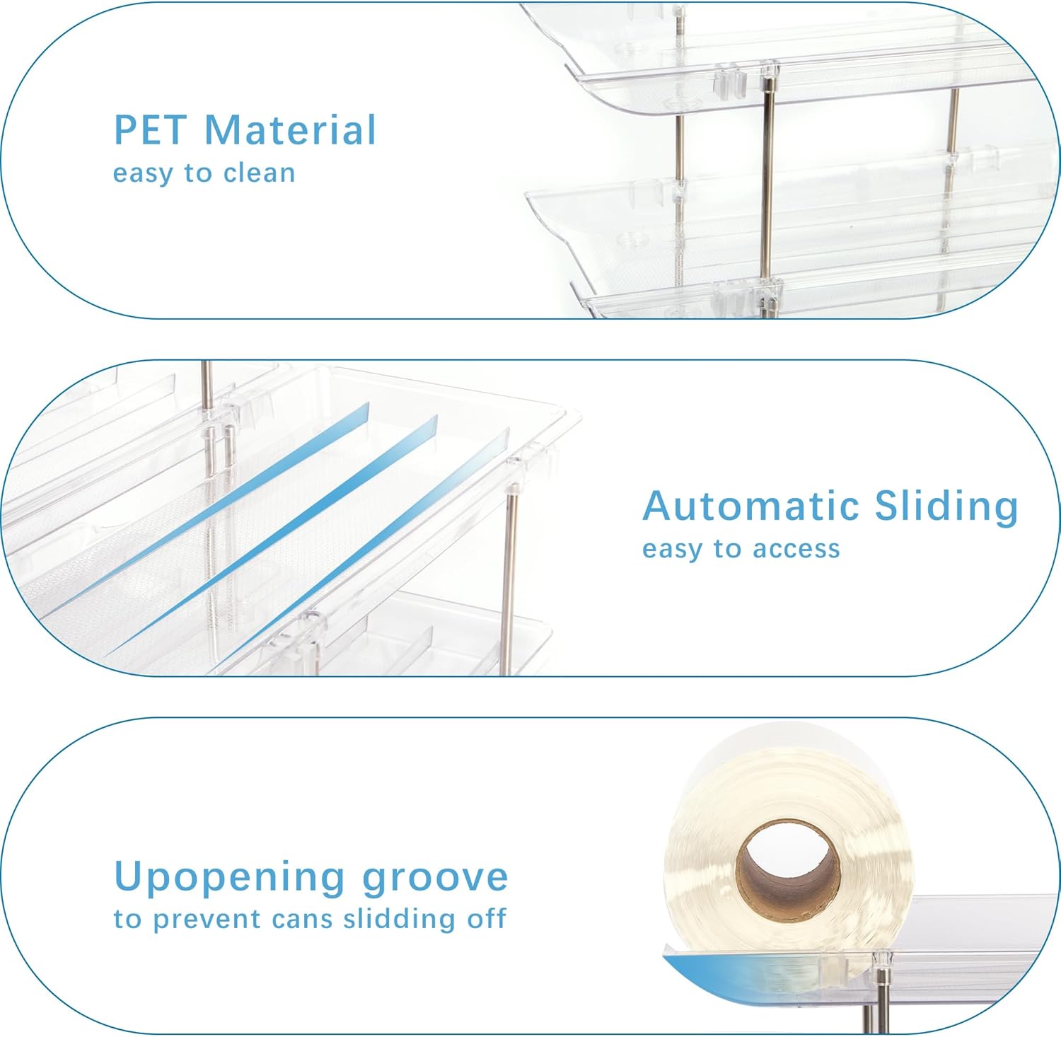 Can Organizer For Pantry, Adjustable Height And Width Canned Goods Organizer, Roller Soup Can Organizer Holds Up to 36 Cans for Kitchen Cabinet or Refrigerator(CLear 3 Tier)