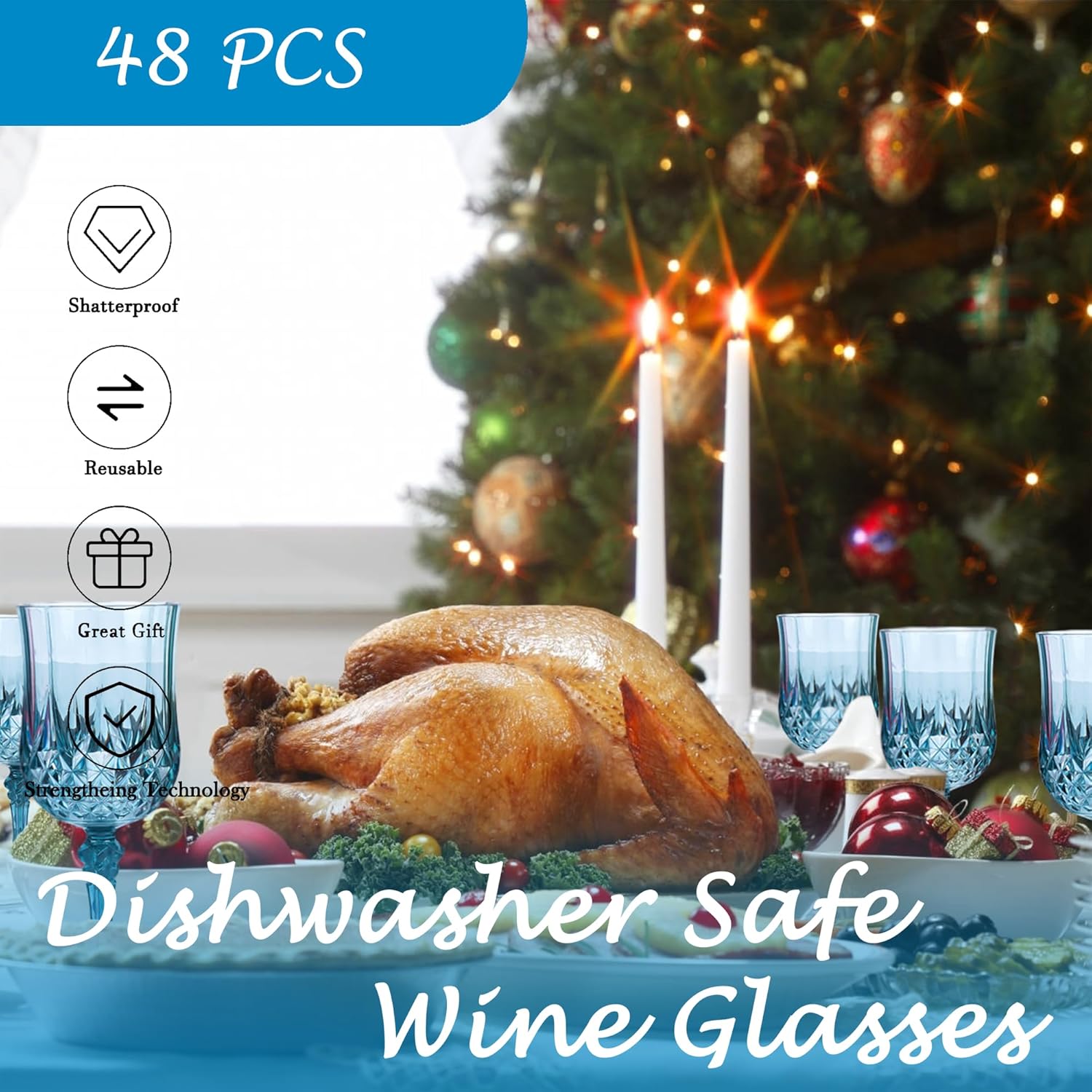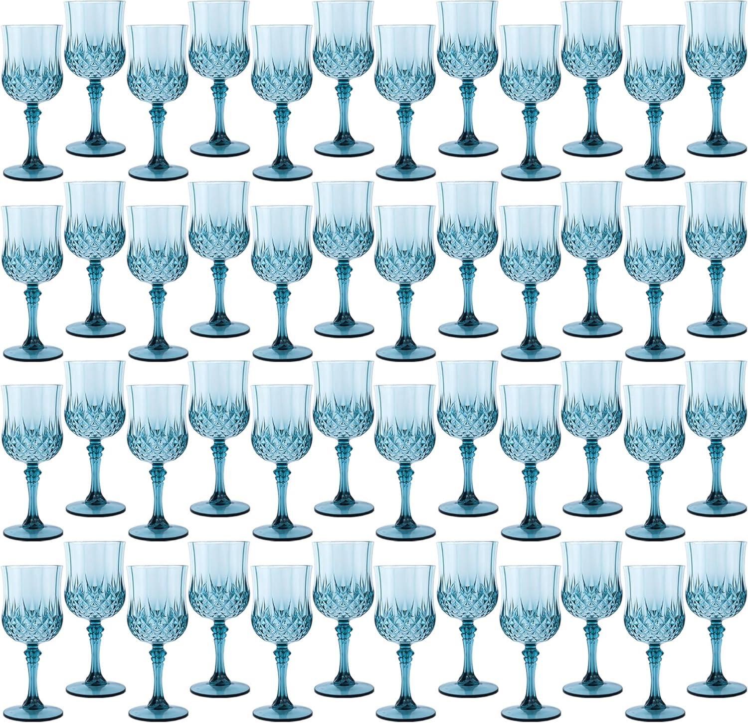 - 🍷🍷🍷【Product Description】 This set includes 48 retro-style dusty blue party plastic wine glasses, providing ample quantity to meet your daily use and replacement needs. The elegant and sophisticated design makes your wedding reception unique