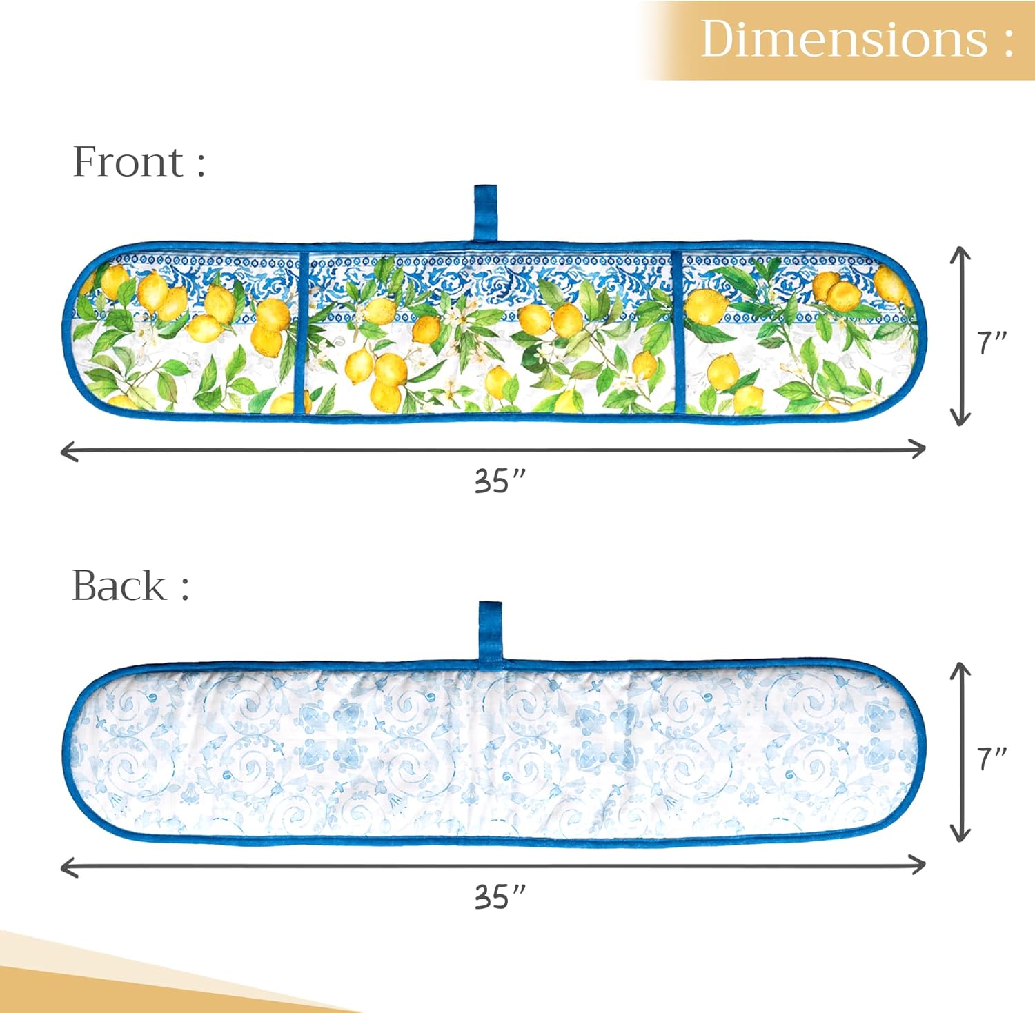 - Package includes: Includes 1 double oven mitt sized 7"x35". Perfect for handling hot cookware safely while adding a touch of European elegance to your kitchen. Designed in Europe and made in India with care
