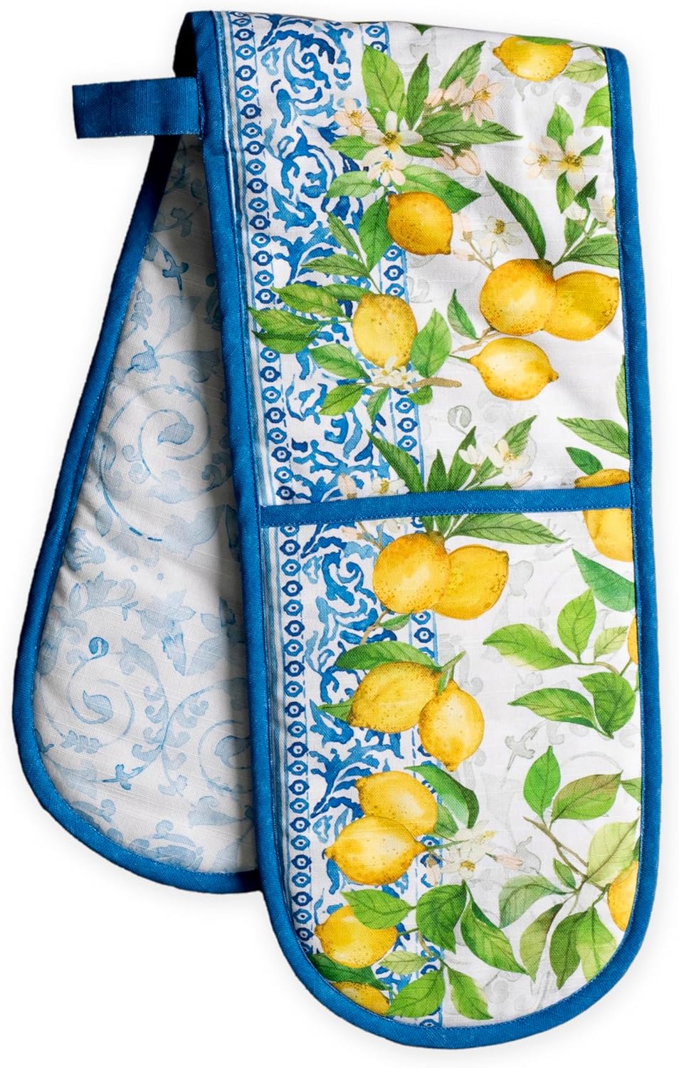 Maison d' Hermine Double Oven Mitts 100% Cotton 7"x35" Double Oven Mitt Heat Resistant BBQ Cooking Gloves with Loop, Baking, Grilling, Home, Kitchen, Handling Hot Pans Spring Summer (Cedrat)