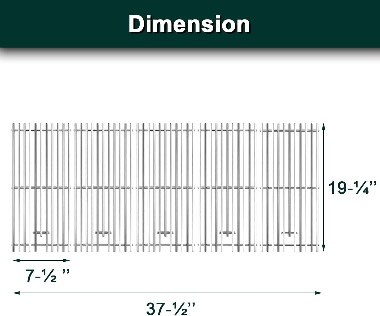 - 【Dimension and Package】 7 1/2’’ x 19 1/4’’ per bull grill grates, 37 1/2’’ x 19 1/4’’ for 5 Pcs bull bbq grill grates, total 5 Pcs in 1 Pack bull grill grates replacement bull grill replacement parts (Please make sure the size and package is perfectly fit your bull grill parts)