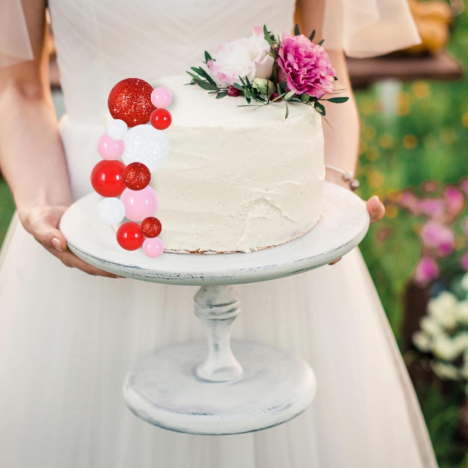- Package Included:40 pieces plastic foam balls cake toppers in 4 colors:white,red,pink.Size:including 0.79 inch x4, 0.98 inch x2, 1.18 inch x2 and 1.57 inch x2.