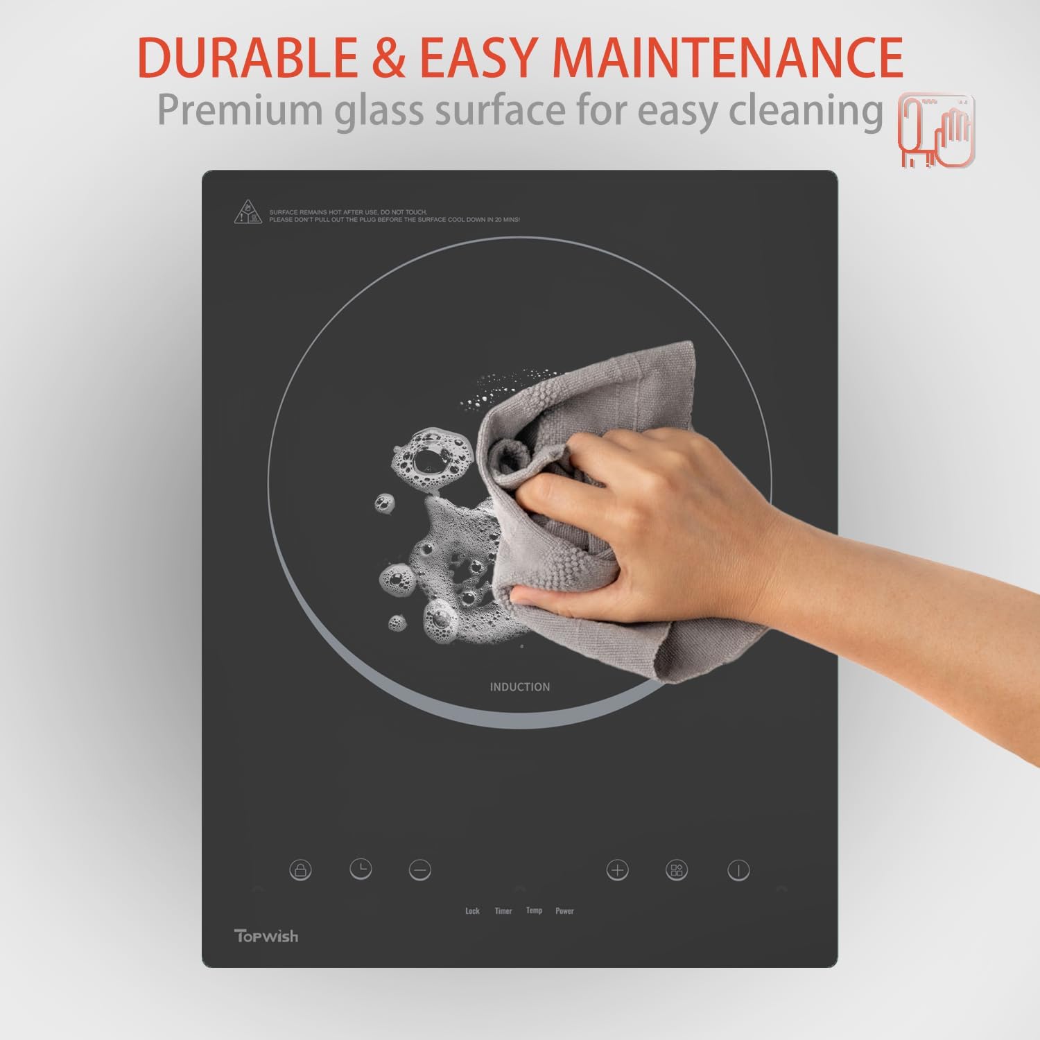 - Energy-Efficient Induction Cooktop- The TOPWISH induction cooktop delivers 1600 Watts of power for quick, energy-efficient cooking. Our induction stovetop is almost 50% more powerful than other electric or gas stoves, ideal for any kitchen, dorm, RV, or outdoor use